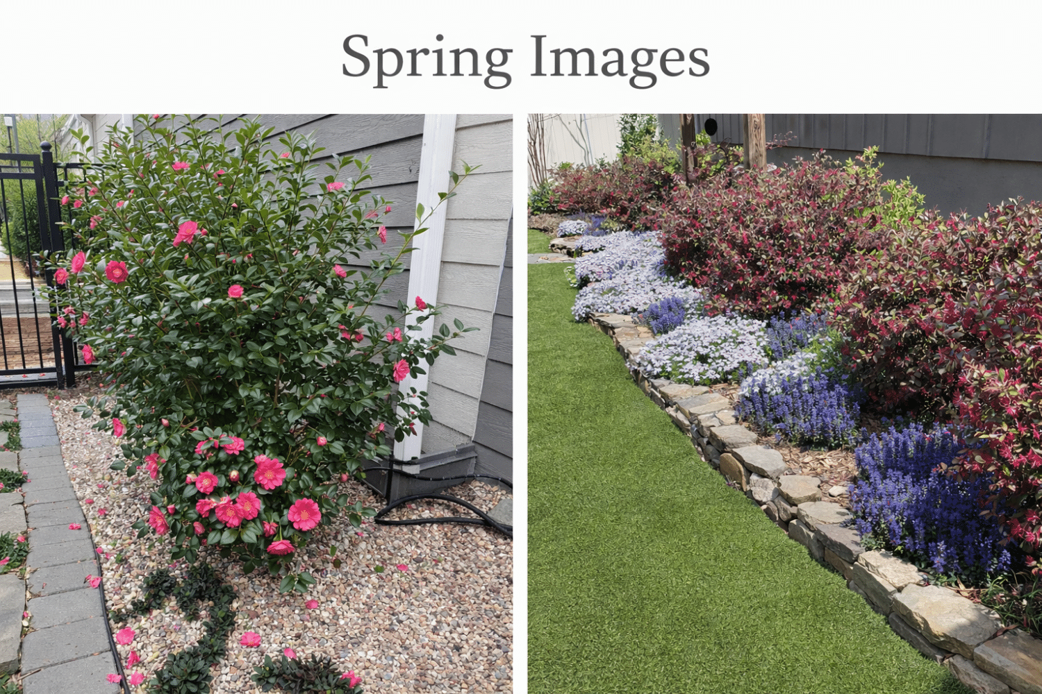 Light pink crape myrtle, limelight hydrangeas, azaleas, camellias, and more