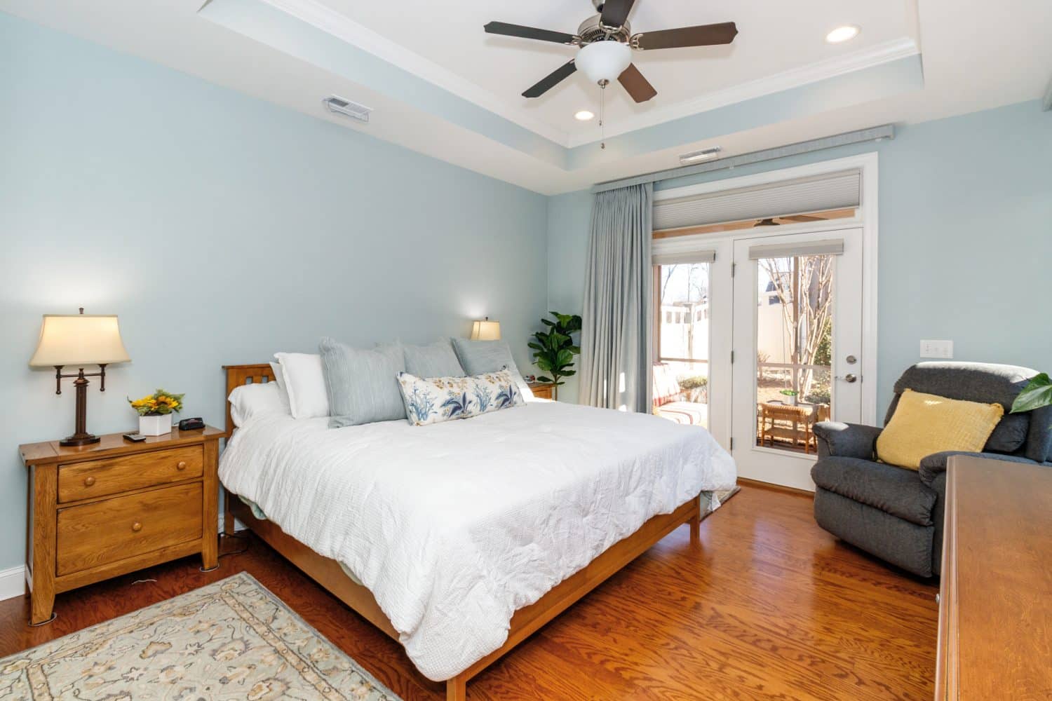 Moving into the primary suite, you will find a tray ceiling, additional windows, and a zero-entry bathroom designed with accessibility in mind. Safety ADA bars, quartz countertops, and a custom walk-in closet add peace of mind without sacrificing style.