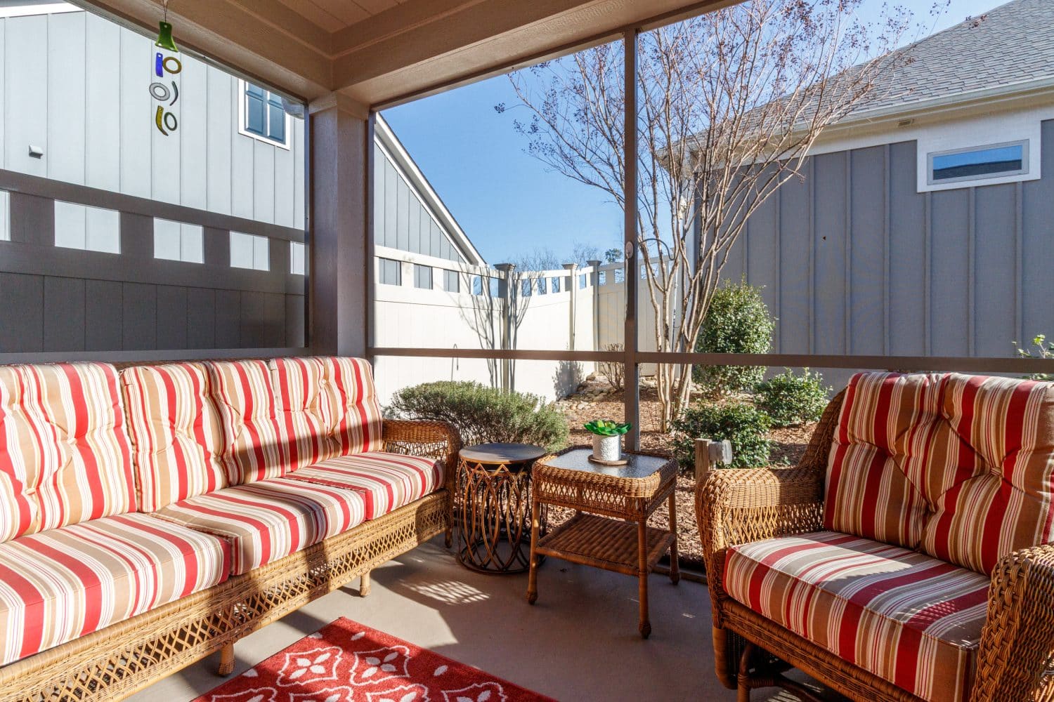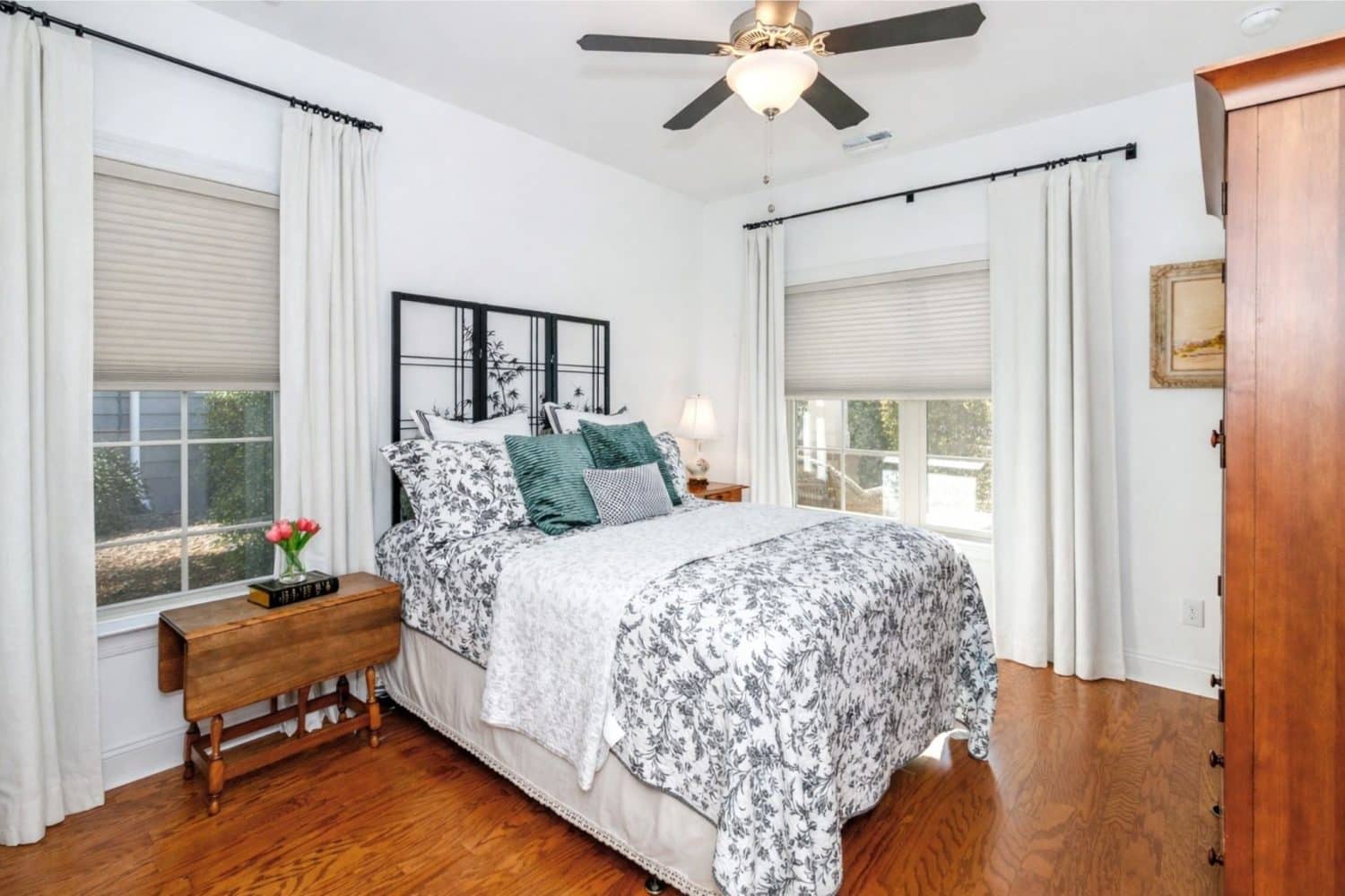 Of course, outdoor space matters just as much as the interior. Fortunately, the front and side yards have been professionally redesigned using Carolina favorites that bloom year-round. A drip irrigation system keeps everything thriving with minimal effort.