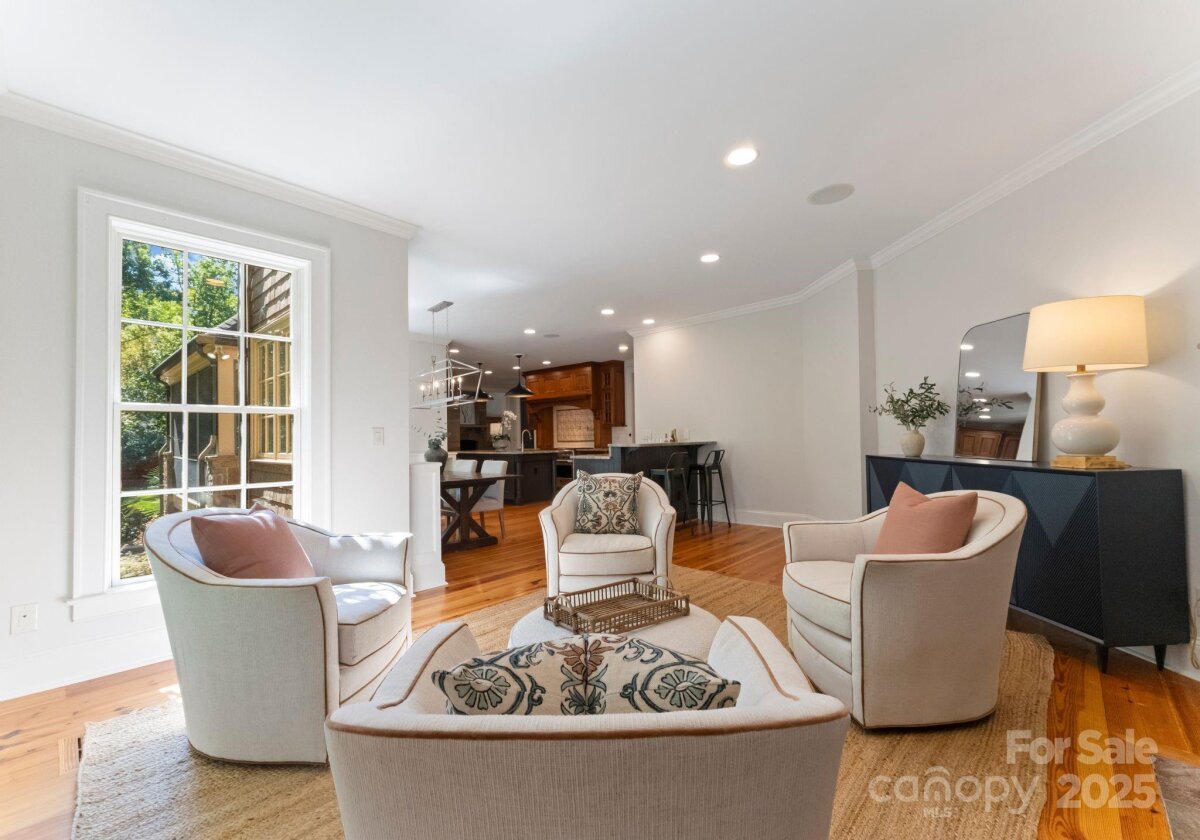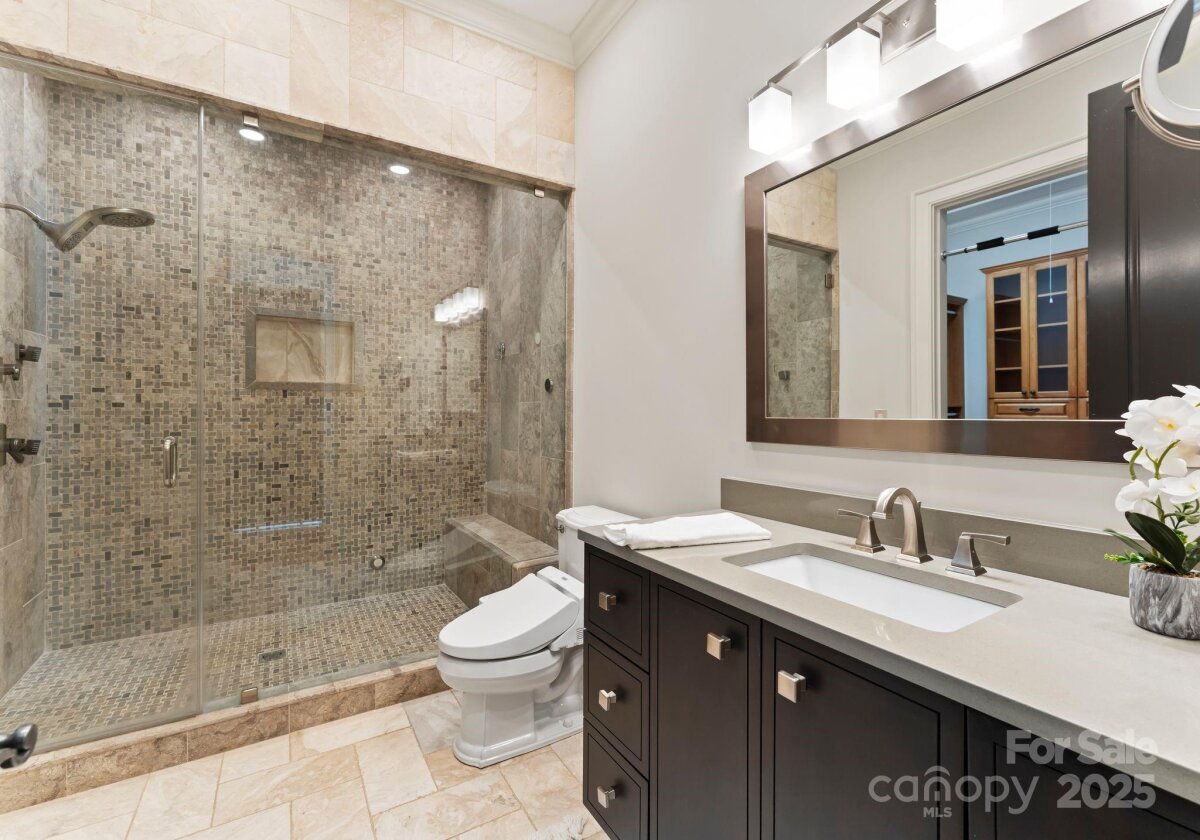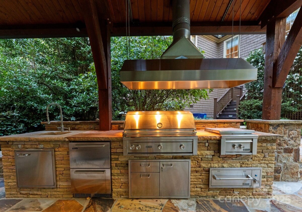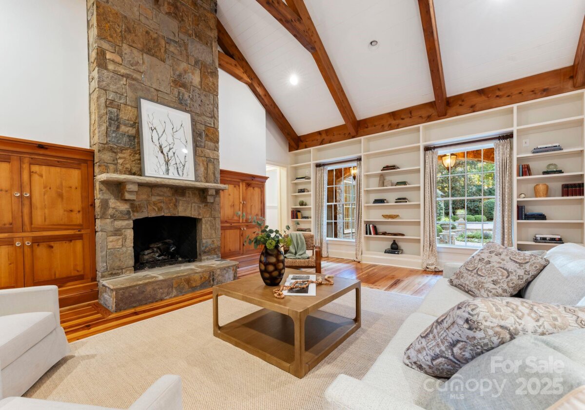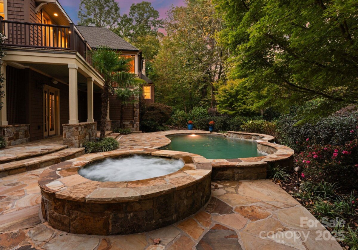 Nestled on a private hilltop just a stone’s throw from SouthPark, 2357 Rock Creek Drive is an exquisite architectural gem that seamlessly merges timeless craftsmanship with tranquil natural design. This elegant residence is set within 4.91 acres of verdant, timbered land, creating a sanctuary where the elements of fire and water beautifully complement the environment. Built with lasting stone and cedar, the home radiates privacy, warmth, and an intimate connection to the surrounding nature. Showcasing remarkable architectural elements, this picturesque five-bedroom, six bath one powder room estate beautifully blends old world charm with modern sophistication including reclaimed antique beams from an 1840s Rock Hill log home and Victorian doors salvaged from historic St. Louis estates. Five fireplaces, vaulted ceilings, and bespoke millwork are featured throughout, with the original home having graced Southern Living's cover in 1983. A comprehensive renovation in the early 2000s doubled the home's size. The stunning chef's kitchen caters to culinary enthusiasts and entertainers alike featuring a large island, gas cooking, and state of the art appliances. Dual primary suites are thoughtfully designed, offering luxurious baths and abundant storage. A theatre-style media room on the ground level opens to pool terraces, while dual basements provide flexible spaces for guests and entertainment, complete with additional bedrooms and a wet bar. Outside, a private oasis awaits featuring a beautiful stone-framed pool and rustic pavilion that overlook the expansive wooded acreage. Flowing ponds, sunken terraces, and an outdoor kitchen create an ambiance of retreat and relaxation. An inviting fire pit and a vast grass play field further enhance the property's allure making it a true haven in the heart of SouthPark.
