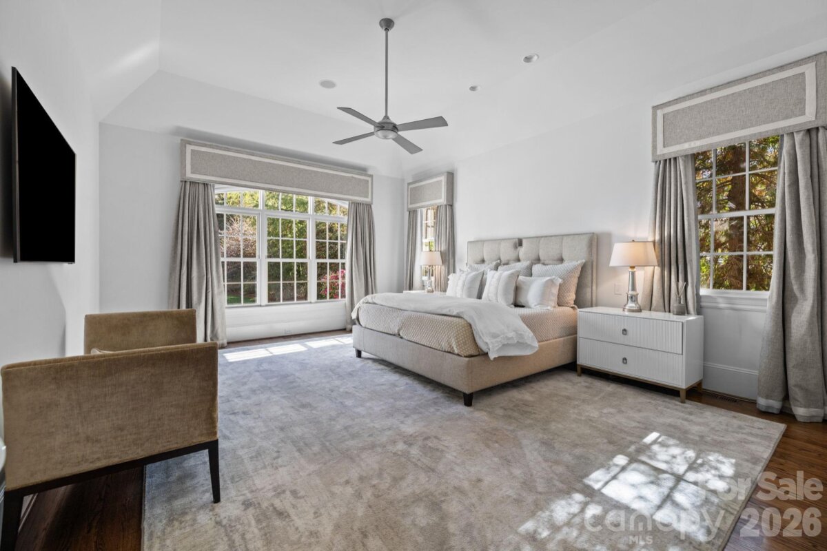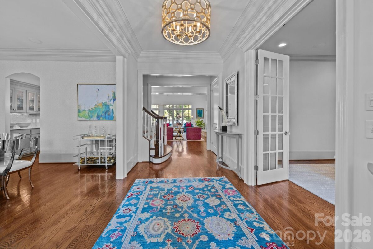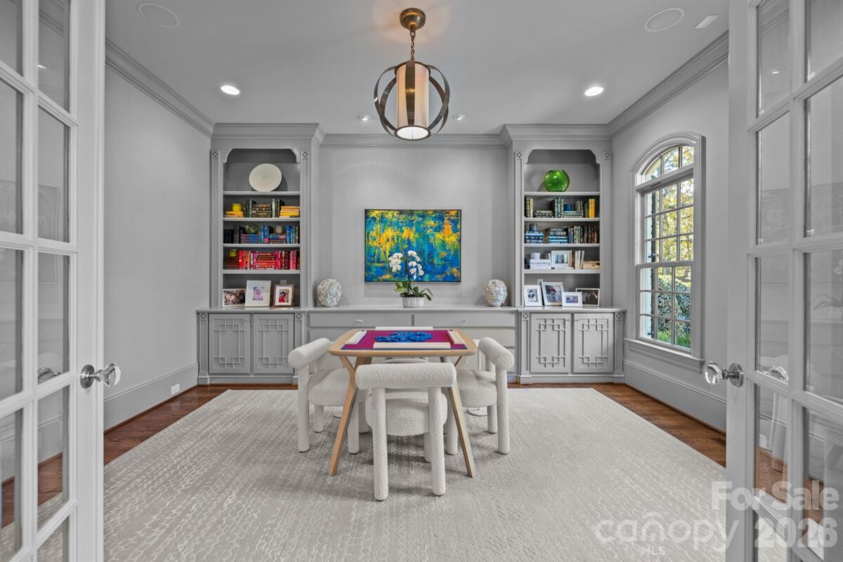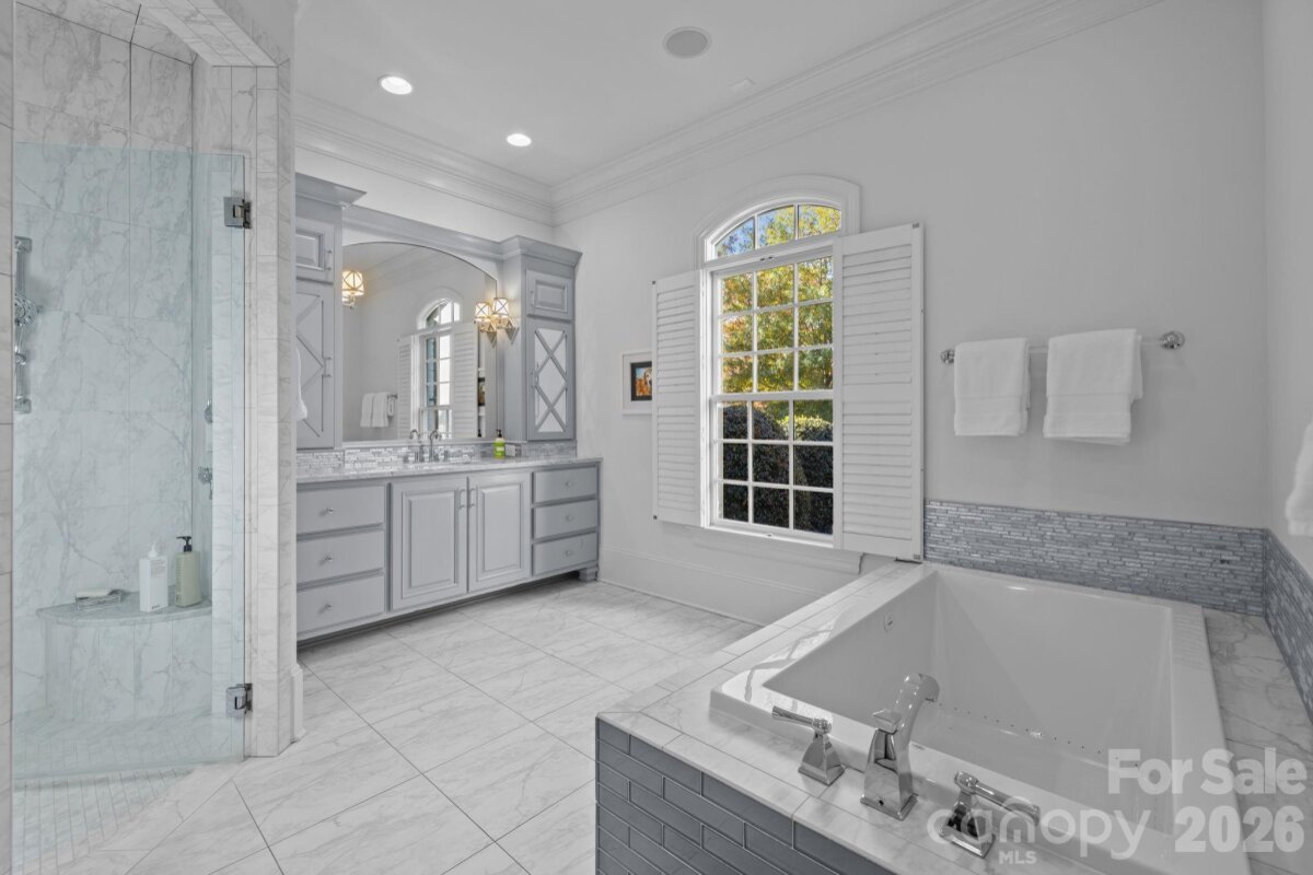 Incredible 5 bedroom home nestled in the middle of Foxcroft. This exquisite custom residence built by Stan Howey blends timeless elegance with thoughtful, modern concepts. Designed with an open floor plan & endless natural light, the living spaces flow seamlessly, creating an inviting atmosphere for both everyday living & entertaining. Every room was carefully considered, resulting in well-proportioned, highly functional living areas. The wide entrance foyer with views through the house into the gorgeous back yard is open to the dining room & living room (or formal office) on either side. The huge gourmet kitchen includes marble countertops, a spacious center island with bar seating & stainless steel appliances. Walk-in pantry, a laundry room with excellent storage, a home office & back drop zone all within steps of the kitchen & the center of the home. The kitchen is open to the great room & breakfast area as well. Walls of windows open the main living areas to the outside living from all angles. The great room includes a gas fireplace with flanking built-in shelving. The primary suite on the main level provides a serene retreat with a spa bathroom & two walk-in closets. Dual staircases access the upper level which includes four secondary bedrooms, each with access to its own bath—ideal for family & guests. Adding to the home’s versatility are a huge rec room and additional flex space on the upper level. Plus, two expansive walk-in attics, one conveniently located off the rec room & another on the third floor, easily accessible by stairs, offering exceptional storage or future expansion potential. The outdoor living is equally impressive with a covered porch with a wood burning fireplace & a custom hot tub / pool (added to the property in 2021) all surrounded by professionally designed mature landscaping for complete privacy. Everpure water filtration system. Central vac. Front & rear irrigation. Three car garage with Polyurea floor coating & an electric car charger. Easy walk to the neighborhood pool and tennis club via sidewalks. (individual membership required)