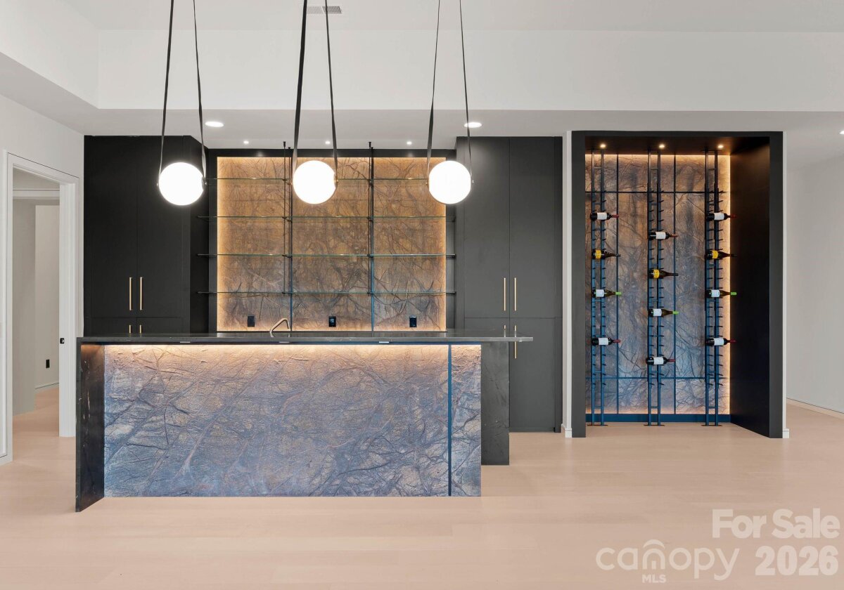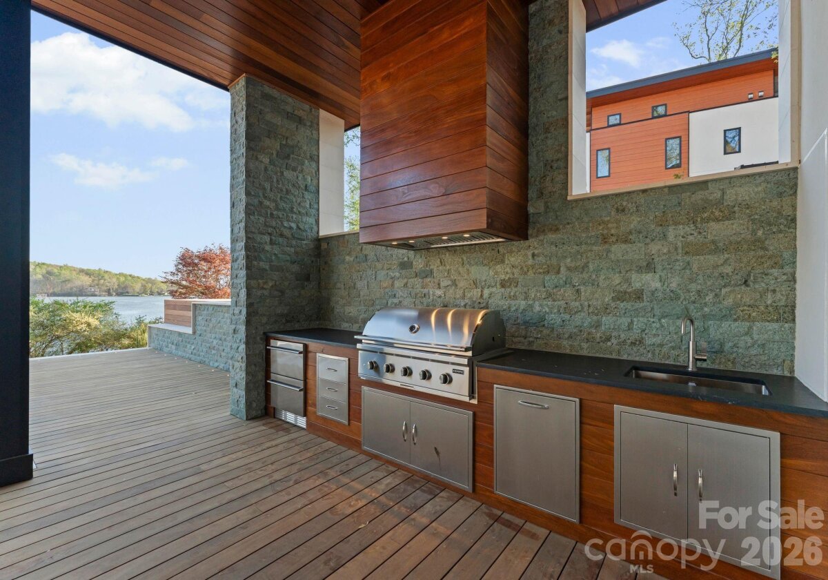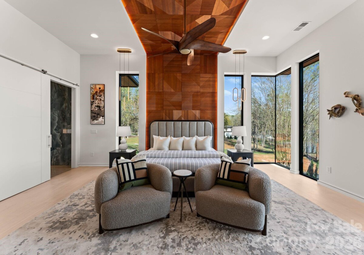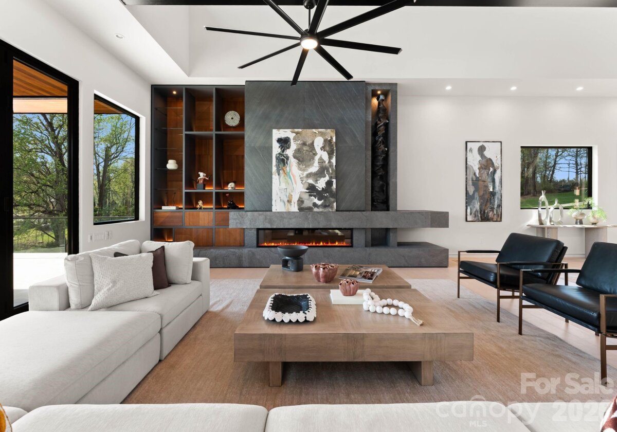 Exquisite Waterfront Masterpiece on Lake Wylie – Discover an architectural wonder just 20 minutes from Uptown Charlotte. Designed and built by Artistic Contractors, one of Charlotte’s premier design/build firms, this 8,300+ sq ft modern lakefront retreat embodies warmth, innovation, and serenity—offering a rare combination of world-class design and unmatched proximity to the city. Set on a gently sloping waterfront homesite beneath mature trees, this residence blends natural materials with bold geometry to create one of the most extraordinary private homes on Lake Wylie. Located just 5 minutes from Charlotte Douglas International Airport, this property delivers true convenience without compromise. Step through the monumental 10’ x 10’ pivot door into the breathtaking 1,400 sq ft atrium great room—a soaring, light-filled space combining living, kitchen, and dining beneath a dramatic 28-foot pyramidal clerestory ceiling clad in rich imported Peruvian cumaru wood. Exposed structural steel and a 24-foot folding glass wall seamlessly connect the interior to expansive covered terraces, creating one of the most architecturally striking living spaces in the region. The 6-bedroom, 5.2-bath home was designed with both luxury and livability in mind. The chef’s kitchen features a 10’ x 6’ waterfall island, professional Monogram appliances, Miele induction cooktop, and a concealed scullery. The great room is anchored by a 74†linear fireplace set against a dramatic wall of book-matched stone and custom wood paneling. A floating mono-stringer staircase with glass railing and 3†white oak treads serves as a sculptural centerpiece. The primary suite offers a true retreat with floor-to-ceiling glass capturing long-range lake views. The spa-inspired bath features a freestanding tub, oversized rain shower over a cumaru deck floor, and expansive custom closets with integrated lighting. Outdoor living is equally impressive, with over 1,800 sq ft of covered terraces finished with cumaru ceilings and imported Indonesian limestone flooring. Motorized screens, built-in audio, and a full outdoor kitchen create a seamless extension of the home. The resort-style infinity-edge pool and spa, finished in sukabumi stone, overlook Lake Wylie and are surrounded by thoughtfully designed landscape elements. Additional features include all-aluminum thermally broken windows and doors with low-E argon-filled 1" thick glass, spray foam insulation, tankless hot water, smart home integration, EV-ready three-car garage, and lake-fed irrigation system. Situated among a collection of high-end custom homes, this property represents a rare opportunity to own new construction of this caliber on Lake Wylie—often available at a compelling value relative to comparable homes on Lake Norman—while being just minutes from Uptown Charlotte, the airport, The River District, and nearby walking trails. This is more than a home—it is a statement of design, craftsmanship, and lifestyle.