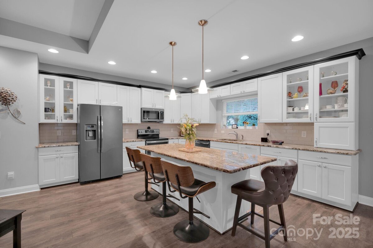 A Private Oasis with Endless Possibilities in the Heart of Harrisburg, NC Welcome to a truly rare find! A multi-home estate tucked away on 2.18 beautifully landscaped acres in the sought-after town of Harrisburg, NC. This one-of-a-kind property features three separate homes on a single parcel, offering unmatched versatility for multi-generational living, rental income, or investment potential. At the heart of the estate is an impressive luxury duet-style residence, consisting of two independent homes under one roof: Main House Side A (2,945 sq. ft.) - Thoughtfully designed for comfort and accessibility, this home is fully equipped for handicap access with wider doorways in certain areas and a custom-designed bathroom to accommodate a fully immobile individual. The main level features three bedrooms and two full baths, while the second story includes one additional bedroom, one full bath, and attic space for storage. Enjoy outdoor living on the covered back porch complete with remote-controlled automatic awnings for shade and comfort. Main House Side B (2,552 sq. ft.) - Designed with both relaxation and entertainment in mind, this side offers three bedrooms and two and a half baths on the main level. The half bath is located on the back porch which provides convenient access for guests enjoying the in-ground pool, which features a brand-new liner installed in May 2025. The unfinished second story offers the opportunity to expand, with space for an additional bedroom, full bath, and storage. Like Side A, this home also includes a covered front patio, two-car garage, and a covered rear porch (this side has manual awnings). Common Features That Both Sides Of The House Include - Main House Side A & B Each home includes its own laundry room and full-sized gourmet-style kitchen, perfect for independent living or rental flexibility. Some appliances convey, including all of the appliances in both kitchens and also the refrigerators in both garages. Washers and dryers do not convey. Both homes offer spacious open-concept living areas and large primary bedrooms, with separate HVAC systems; and Side A features a split system for the finished upstairs. The property is enhanced by lush landscaping, an in-ground irrigation system with its own meter, and a large privacy fence that lines the front of the property for security and seclusion. Guest House (1,100 sq. ft.) Tucked behind the main home, the guest house offers even more flexibility and value - ideal for extended family, guests, or income-producing use. The two-story layout includes dedicated parking, a covered front porch, and a gazebo canopy for shaded outdoor enjoyment on the back porch. The first level features a living room, full kitchen, laundry room, and full bath. The second level includes two bedrooms and one full bath. All appliances in this home convey with the sale. Completing this remarkable property are two storage sheds - one located off the main driveway and another within the pool enclosure for added convenience. Whether you’re envisioning a multi-generational compound, a primary residence with built-in rental income, or a smart investment with multiple streams of potential income, this property delivers it all. Experience the tranquility of your own private oasis, just minutes from Harrisburg’s shops, dining, and top-rated schools - a rare combination of privacy, comfort, and opportunity.