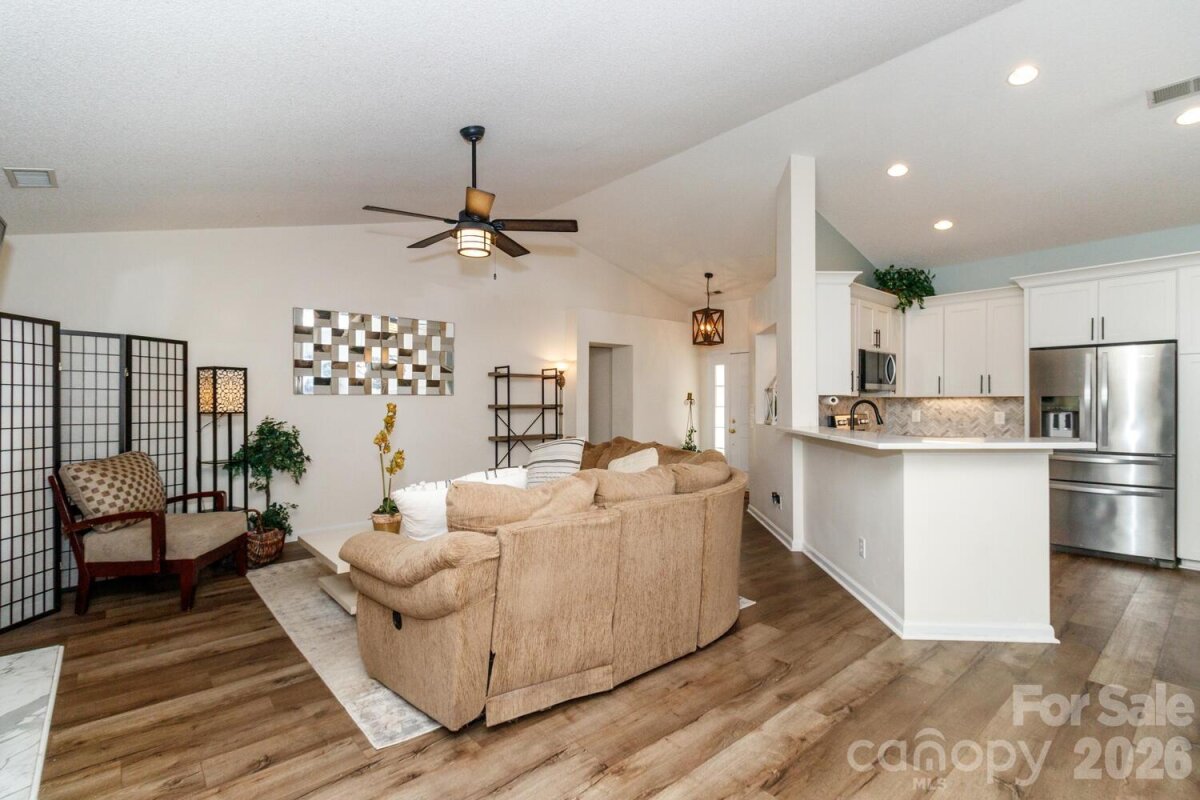 Welcome to this beautiful updated home - updated kitchen with replaced cabinet - tile backsplash - solid surface countertops - Stainless steel appliances - LVP flooring throughout home -upgraded lighting - the primary bath is beautiful with a spa like oversized shower- Hall bath has also been updated - Greatroom with gas fireplace - home has an open floor plan with lots of natural light - 2 car garage - Gas furnace replaced in 2023 - Roof replaced in 2013 - Located in sought after golf course community - Enjoy the premium amenities including multiple swimming pools, playgrounds, pickleball courts, tennis, year round neighborhood events - short commute to Charlotte or Concord and easy access to I485, restaurants, schools, and shopping.