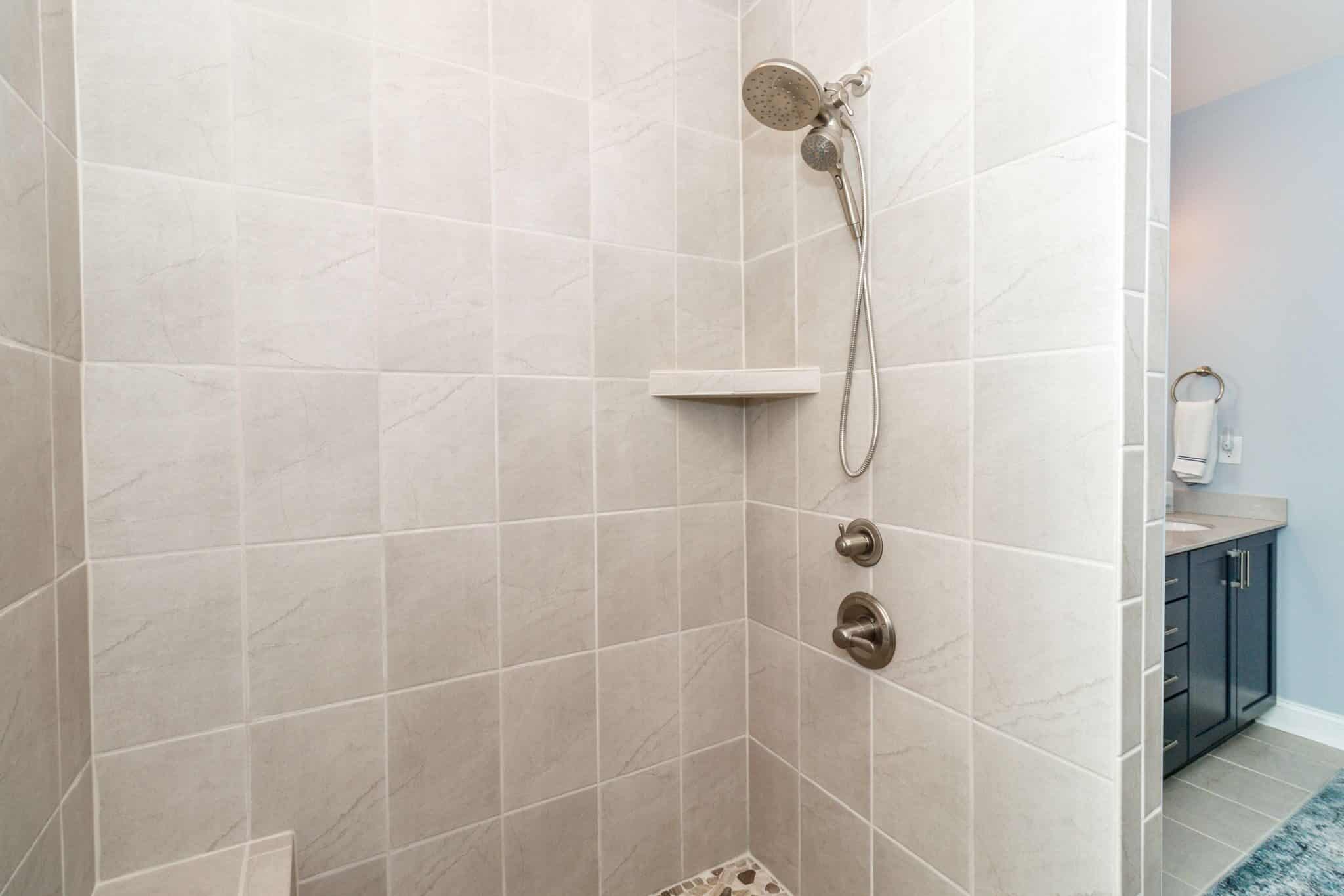 • Heated tile marble floors and a walk-in glass shower in the primary bathroom