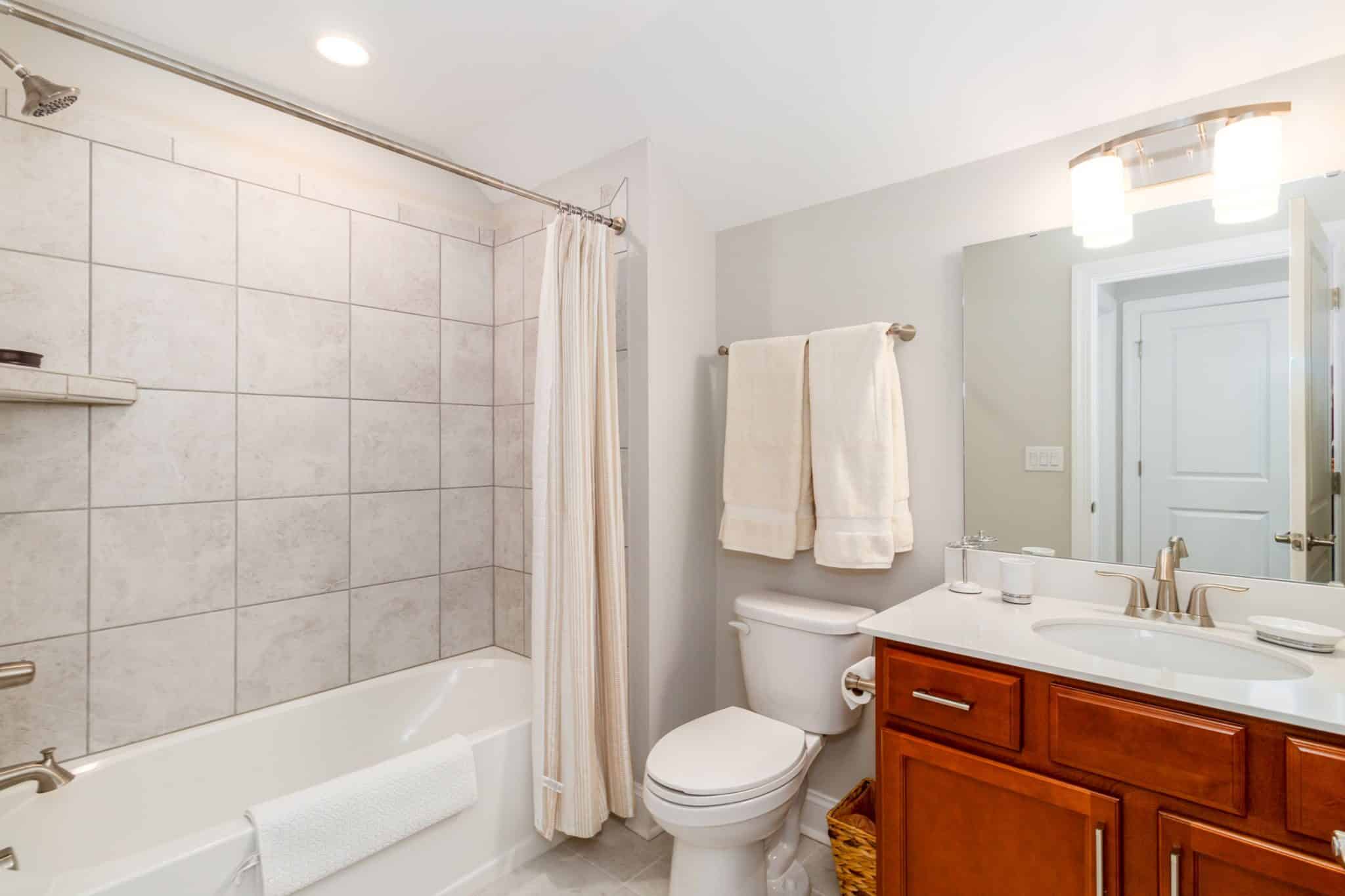 The primary bedroom on the main level is a sanctuary of comfort, with new hardwood floors, access to a screened porch, and a spa-like ensuite bathroom. Start your day like royalty with heated tile marble floors, a walk-in glass shower, and ample storage space.