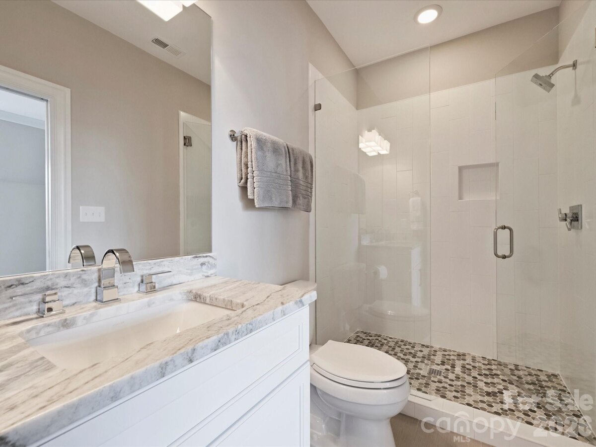 Welcome to Cardinal Crest, a one-of-a-kind community featuring high-end custom homes built to the highest standards, situated on spacious homesites up to one acre in beautiful Union County. The main level offers an open and inviting floor plan with 10-foot ceilings, 8-foot solid-core doors, heavy crown molding, 5†character-grade hardwood flooring, and elegant designer fixtures throughout. The generously sized primary suite features a private spa-like bath with impeccable tile finishes, an oversized shower with seating, and a walk-in closet with custom built-ins. The great room is an entertainer’s dream, showcasing a vaulted ceiling and a floor-to-ceiling gas fireplace with a raised marble hearth and sandstone surround. Telescopic doors open to a screened porch with a gas fireplace, leading to a beautiful patio with a built-in grilling station overlooking a large, level backyard—perfect for a future pool. The gourmet kitchen features an oversized island with seating, custom cabinetry by Vine & Branch, durable stone countertops, Thermador stainless steel appliances, double ovens and a walk-in pantry that opens to a cozy family room with wood ceiling beams, a gas fireplace with sandstone surround, built-ins, and floating shelves. The second floor offers 9-foot ceilings and four spacious bedrooms with walk-in closets, including two en-suite baths and one Jack-and-Jill bath, all finished with the same custom tile and high-end details as the main level. A bonus room offers flexibility as a fifth bedroom or additional living space. This impeccably decorated home showcases exceptional craftsmanship and luxury finishes throughout and is truly a must-see.