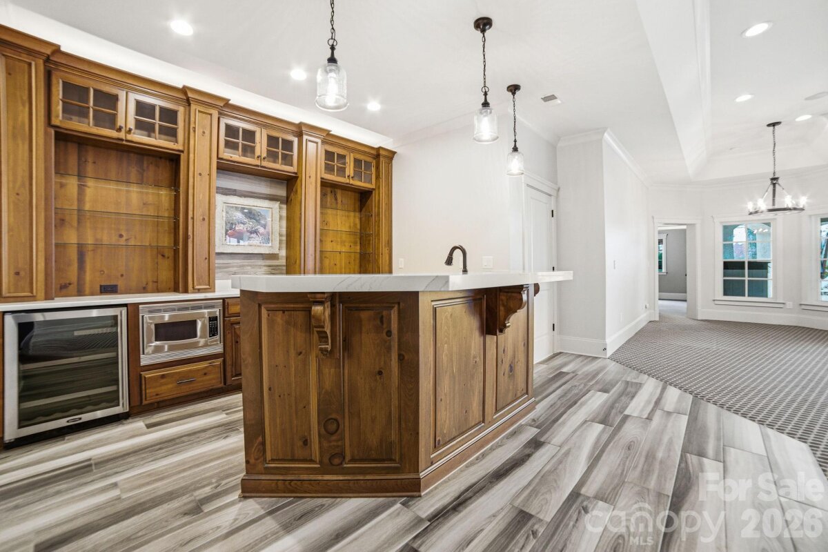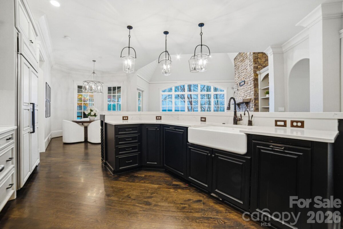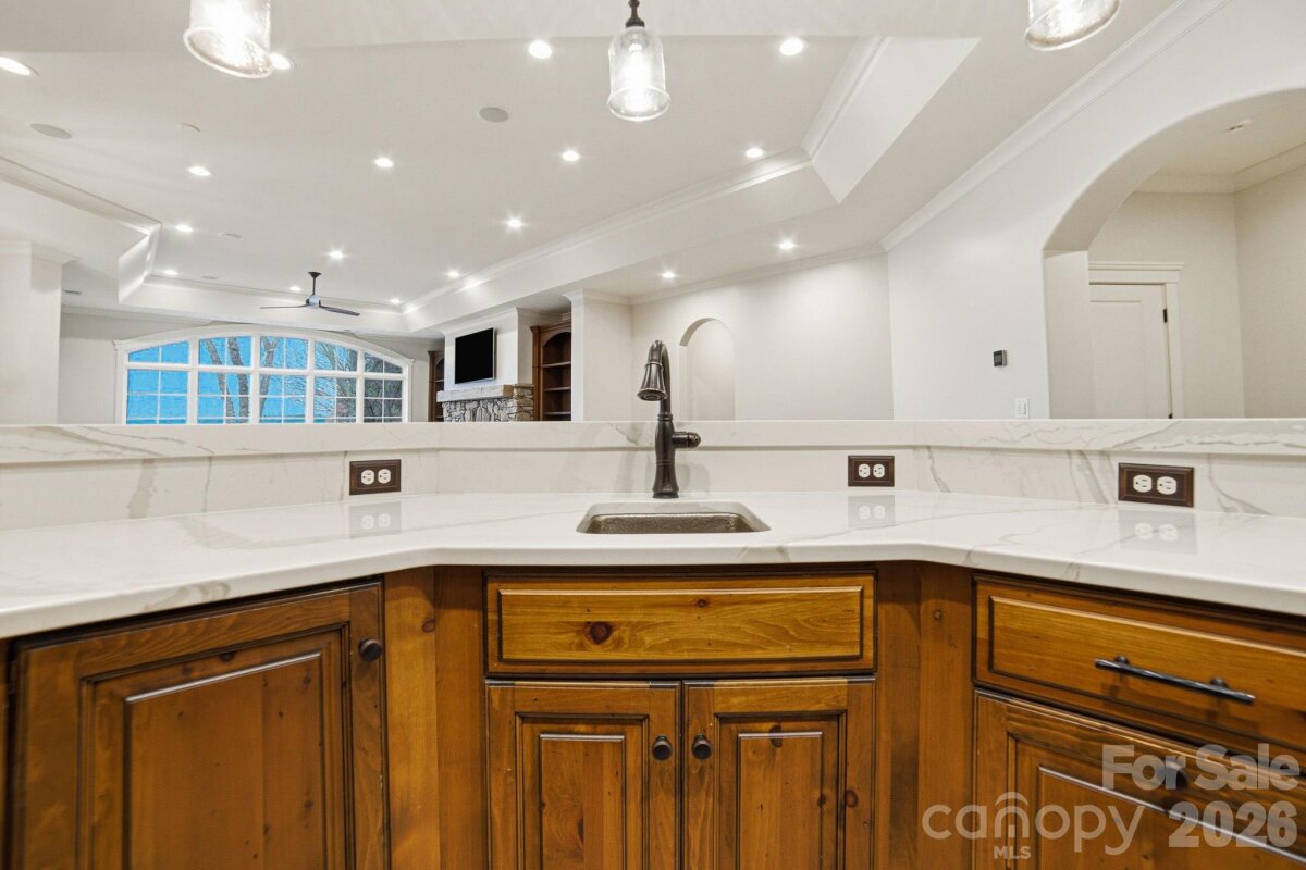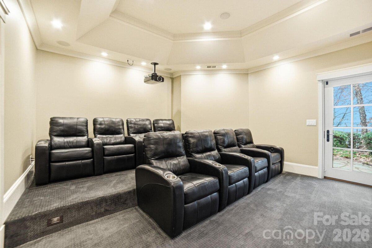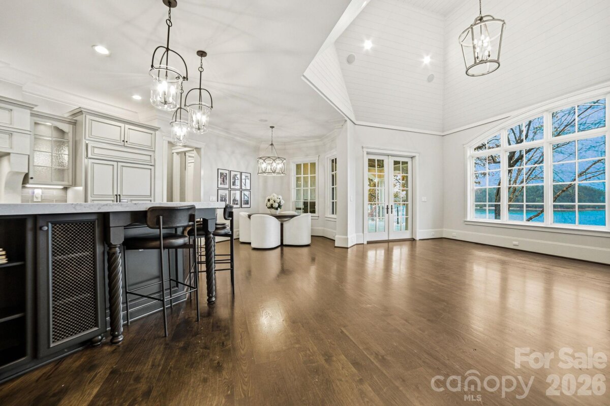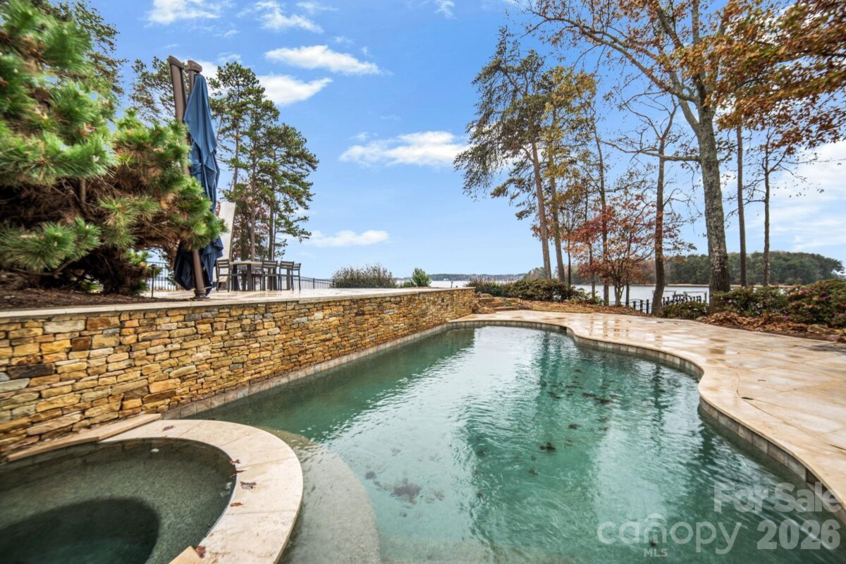 Exquisite and timeless, this custom residence is privately positioned within The Peninsula and showcases spectacular panoramic views of Lake Norman! From sunrise to sunset, the home is filled with natural beauty and thoughtful attention to detail. The gourmet kitchen features a Wolf range and microwave, Sub-Zero refrigerator, an expanded island with elevated finishes, and flows seamlessly into the stunning cathedral ceiling great room framed by expansive lake views. The main level offers a serene primary suite with a spa inspired bath, a study, and an inviting sitting room. A covered balcony overlooks the pool deck, lush gardens, and pier. Upstairs, three generous ensuite bedrooms provide comfort and privacy. The lower level is designed for effortless entertaining with direct lake access, multiple gathering areas, a movie theater, bar, wine cellar, and an additional bedroom. Outdoors, cantilever umbrellas create a resort like setting around the pool, spa, and upper patio. Additional features include Control4 audio, lighting, and security, generator, tankless water heaters, energy efficient upgrades, and newly replaced main level/basement furnace and added blown in attic insulation. This remarkable Lake Norman estate is an opportunity not to be missed.