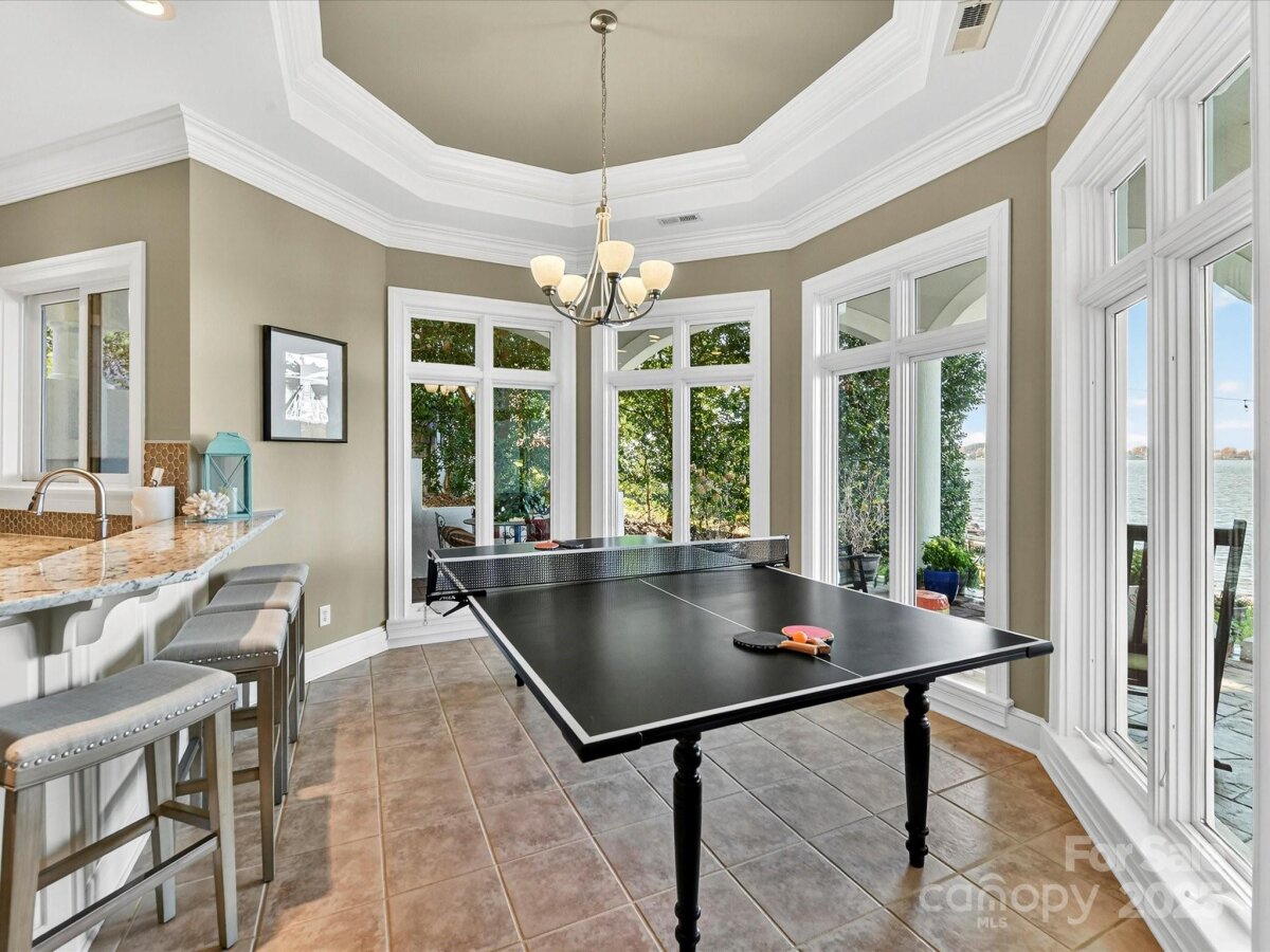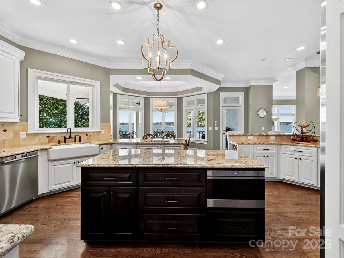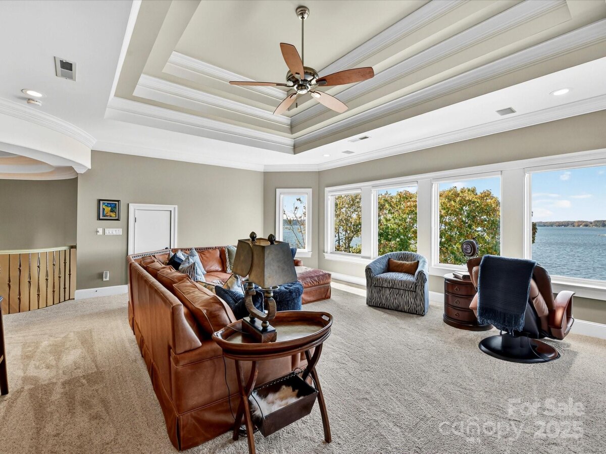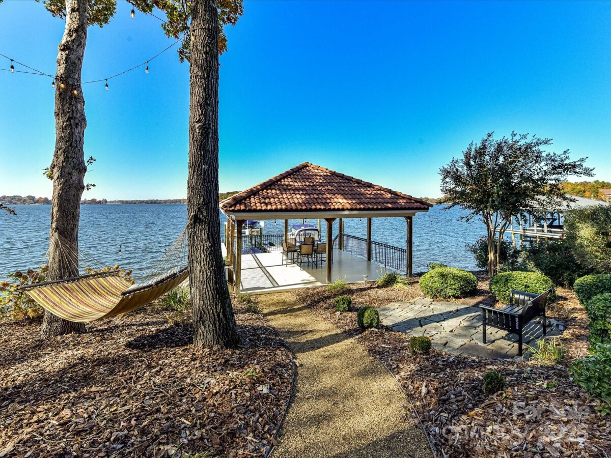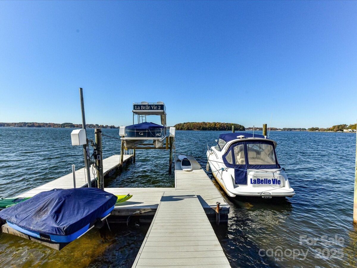 An extraordinary 7,400 sq. ft. Mediterranean-inspired villa by G.M. Helms, featured on the cover of Charlotte Magazine as an “architectural wonder.†This four-story west-facing estate on Lake Norman’s main channel offers breathtaking sunsets and panoramic views of Anderson and Little Mountains. A soaring three-story great room with 24 lake-facing windows, 35-foot ceiling, and 20-foot limestone fireplace creates a dramatic focal point, complemented by a four-story self-supported circular staircase—an artistic and engineering marvel. The home features five spacious bedrooms, eight baths, six fireplaces, a library in Brazilian cherry wood, media and billiards rooms, and an elevator serving the first three levels. Entertain effortlessly with a chef’s kitchen on the main level and a full secondary kitchen on the lake level. The fourth-floor sky lounge with bar offers expansive views of the lake and surrounding islands. Outdoor living includes three balconies, a Spanish-tiled gazebo, and a deep-water dock with lifts for two jet skis, a double-decker pontoon, and pilings for a 45-ft yacht. Lovingly maintained by only two owners since its 1997 construction, the home was extensively updated, including all baths and kitchens, four new A/C units, two tankless water heaters, enhanced audiovisual systems, full exterior painting, and refreshed landscaping. A true architectural gem blending timeless design, luxury, and lakefront living in The Peninsula Country Club and Yacht Club community.