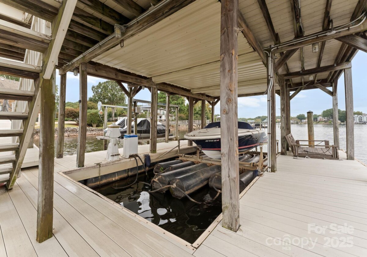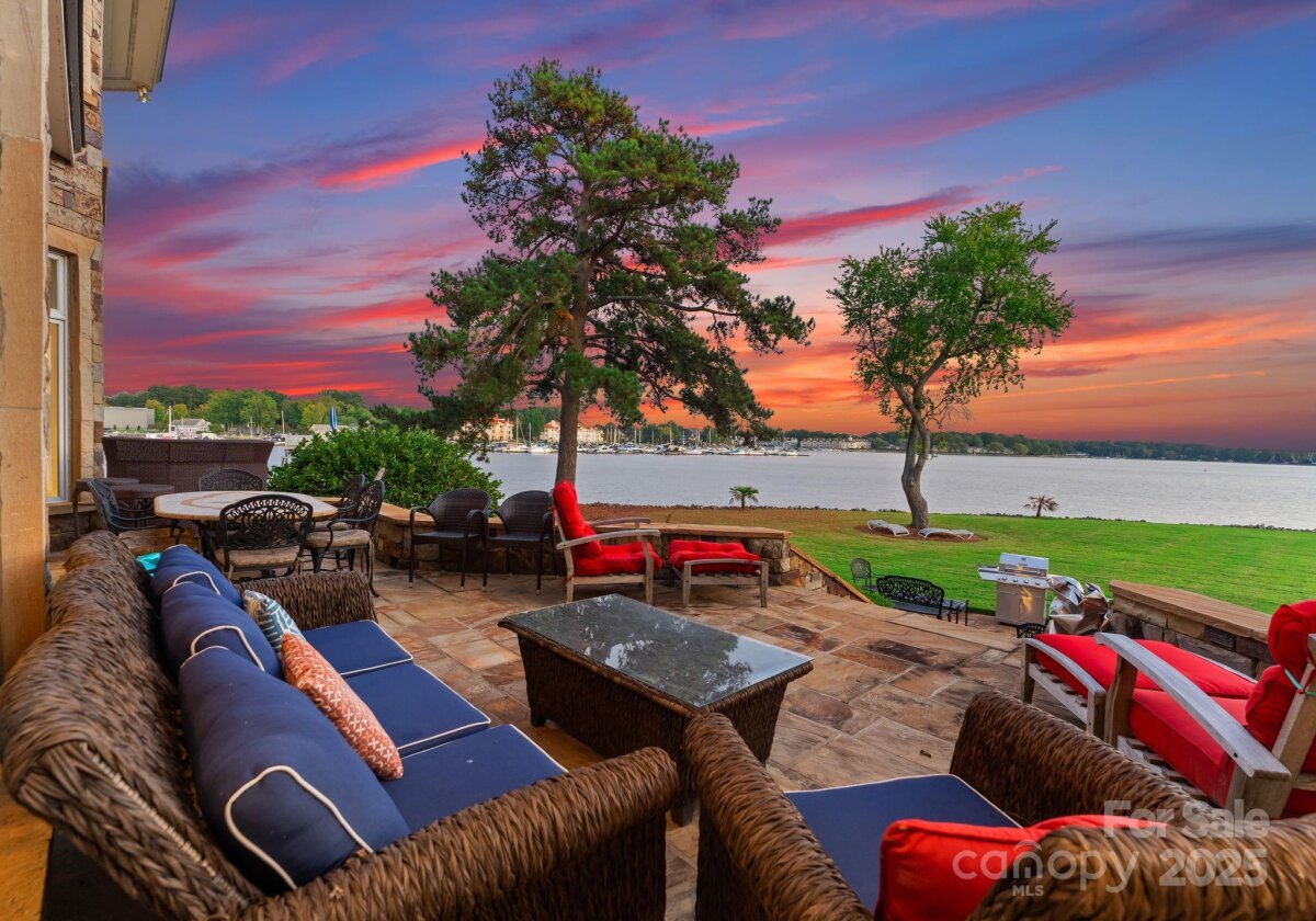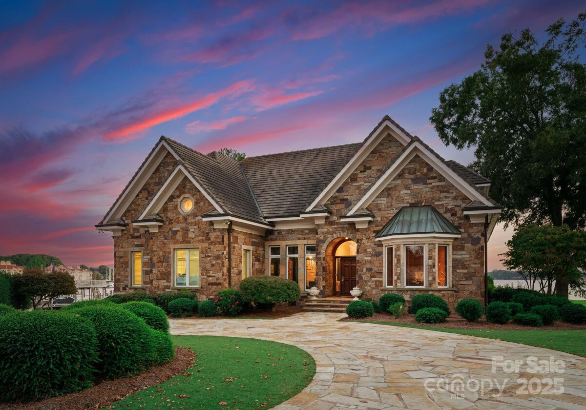 Nestled at the end of a private cul-de-sac in the highly desirable Point Largo community, this exceptional Lake Norman waterfront residence combines timeless design with relaxed luxury. Beautifully positioned to capture year-round water views, the home offers the perfect balance of privacy and proximity to all that Cornelius has to offer. A circular driveway and stately stone-and-stucco exterior set the tone for what awaits inside. The main level showcases an open and inviting layout with abundant natural light, elegant living and dining areas, and a seamless connection to the lake. The primary suite is conveniently located on the main level, offering peaceful water views, a spa-inspired bath, and direct access to the outdoor living spaces. The gourmet kitchen features stainless appliances, a center island, and a spacious breakfast area overlooking the water. Upstairs, a generous loft provides flexible space for an office, media room, or second living area. Three spacious guest bedrooms and three full baths ensure comfort for family and friends. Outdoor living is a dream with multiple areas to relax and entertain, including a covered deck and private dock with boat slip, lift, and seating area—perfect for sunset cruises or mornings on the lake. Experience the best of Lake Norman living in this rare and private waterfront retreat.