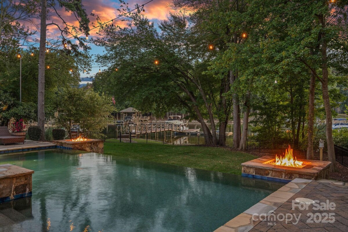 Nestled within the exclusive enclave of Wright's Emerald Cove, the European-inspired neighborhood of custom-built homes, this Lake Norman residence offers an unmatched blend of elegance, privacy, and resort-style living. Set on a 1.24-acre wooded lot, the home features five bedrooms, four ensuites, and a spacious bonus room. The main-level primary suite is a private retreat with an oversized spa bath, while the gourmet kitchen boasts a large island, gas range, double ovens, and an expansive walk-in pantry. High-end finishes are showcased throughout, with a full-house generator providing peace of mind. The backyard is a true oasis, highlighted by a heated saltwater pool with spa, dramatic fire bowls, a poolside cabana complete with grill, refrigerator, and sink, and an inviting outdoor fireplace. The property’s private dock with lift, additional boat slip, and jet ski pads ensure effortless enjoyment of Lake Norman’s waters. A three-car garage and meticulously designed grounds complete this one-of-a-kind estate, offering the perfect balance of European charm and modern luxury in one of the lake’s most coveted neighborhoods.