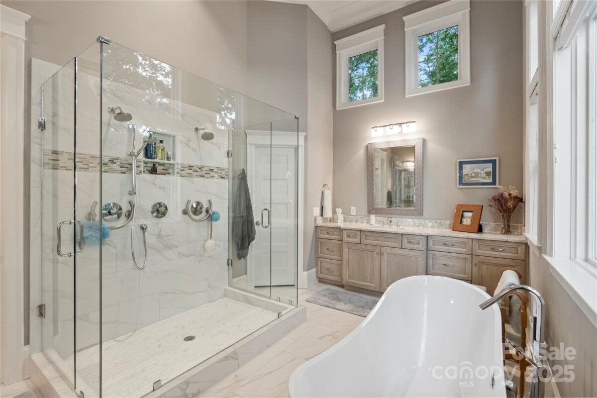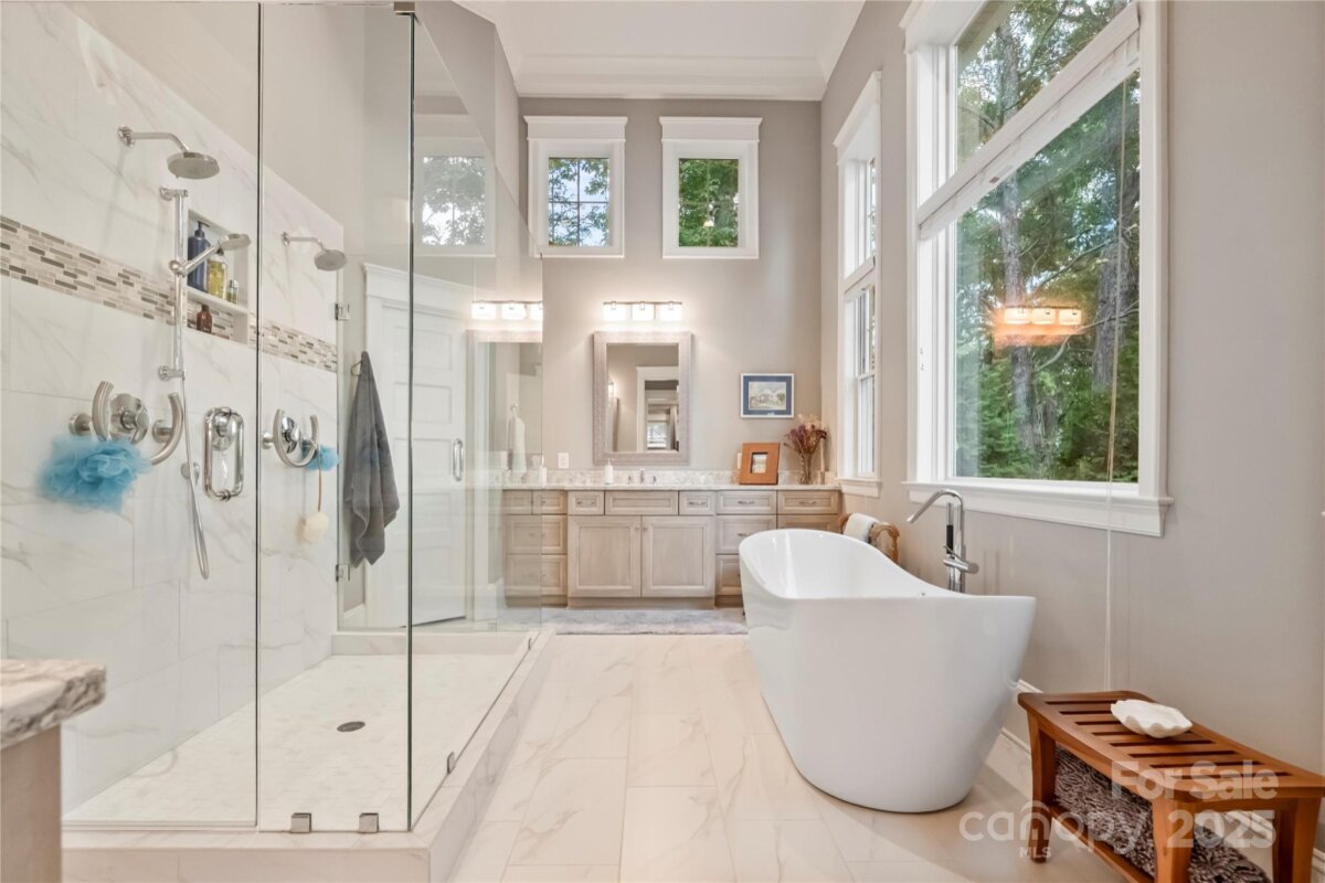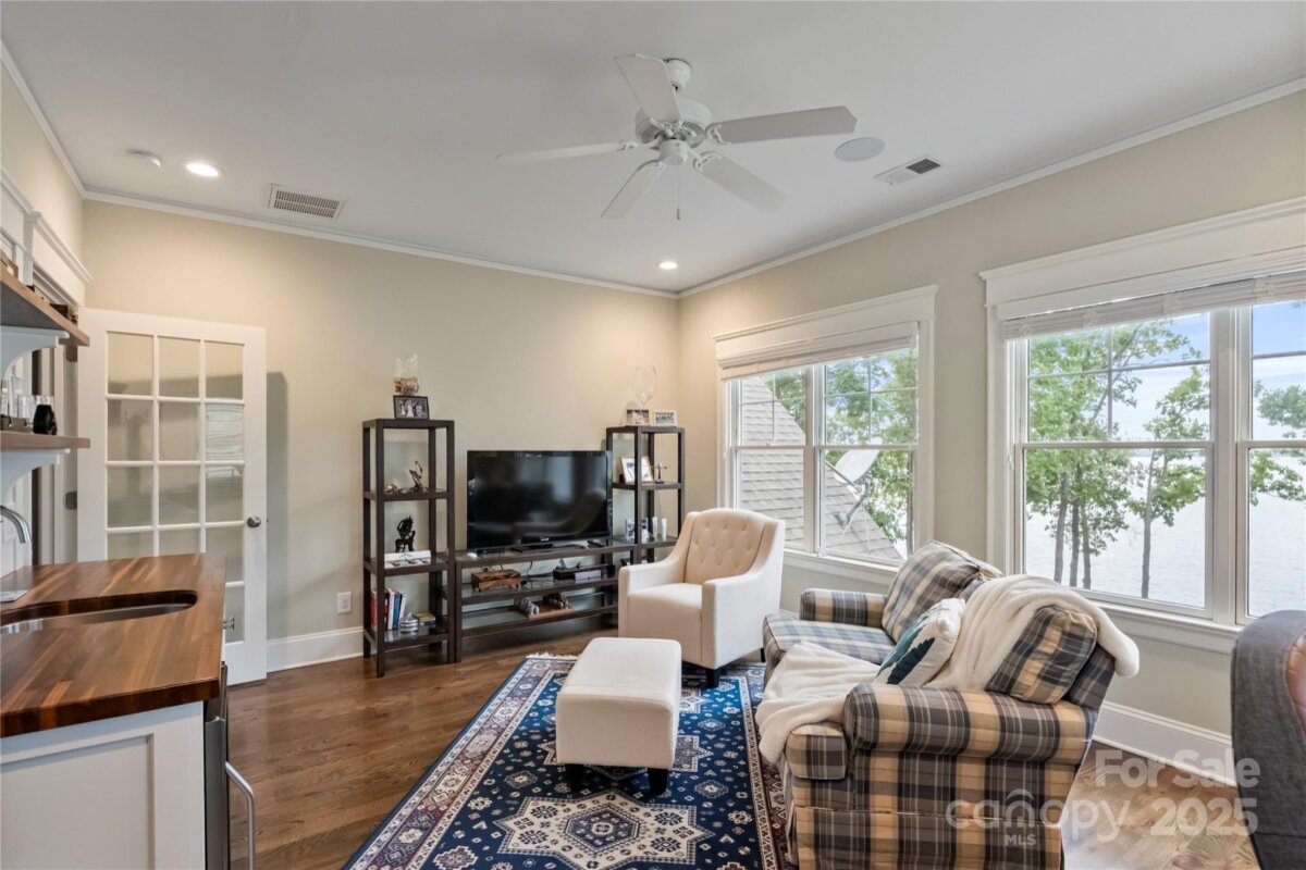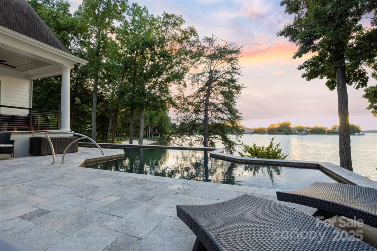 You thought it didn't exist! 440' of shoreline, open water views from sunrise to sunset on private peninsula lot with ES Johnson-built right-sized retreat in a gated neighborhood. Stunning pool & spa steps from the main living area, 3 car garage, primary on the main. Big water views from nearly every room. Open main floor melds living & dining with multiple outdoor entertaining spaces. Kitchen offers oversized island with granite counters, Miele appliances (inc. steam oven), breakfast pantry, and under counter wine fridge. Behind the kitchen is a walk in pantry w/barn door & waterfront laundry room & mud/drop zone. The dining area is surrounded by windows & open to kitchen. Living room has built in bookshelves, gas fireplace, window seat for 2, and sliders leading to covered porch w/vaulted ceiling, gas FP & retractable screens. The waterfront primary bedroom on main has a covered bluestone patio, an en suite bathroom with garden tub, oversized dual entry shower, split vanities, private water closet, heated towel rack, walk-in closet w/wall safe & windowed flex area for den, or add'l boutique style closet with double glass pocket doors. A silver travertine-wrapped pool & spa (ozone powered, even less chemicals than salt, heated by conventional gas or heat pump) is steps from living area, primary suite & pool bath with shower. Meander upstairs, where the landing features built in bookshelves and a delightful reading area. Two upper bedrooms share a Jack & Jill bath (one of which has access to 317sf of unfinished lake-facing space), and an additional en suite bedroom has 2 walls of windows facing the lake. The rec room has built in desk, wet bar w/under counter fridge & shiplap detailing. The 3 car garage, accessed via breezeway, offers 700sf+ of unfinished opportunity, with lakefront windows in place to build out an add'l living space, wellness center, or recreational space. This custom home is 9 years young, and offers enhanced rip rap, 2024 tankless hot water heater, security cameras, gutter guards, Hunter Douglas automated shades in living room, security cameras & Control4 technology. On-site kayak/paddleboard launch. *HOA-assigned slip #6 is a short walk from the home & transfers with sale. (Private dock not available in Pointe Regatta per Duke.)*. Truly no wasted space, feels like a yacht; curated and water-oriented. Located 30 min to Uptown Charlotte & CLT Int'l Airport. Please see attachments for Features Sheet, Floorplan, Survey and add'l info. SHOWINGS BEGIN MON 12/22.