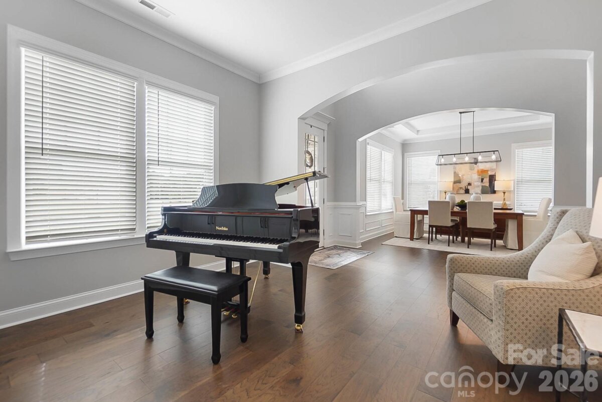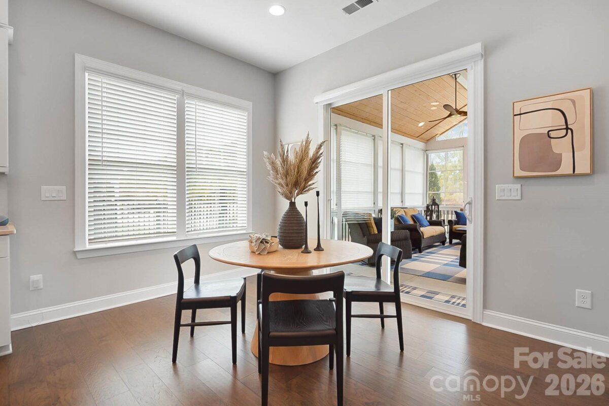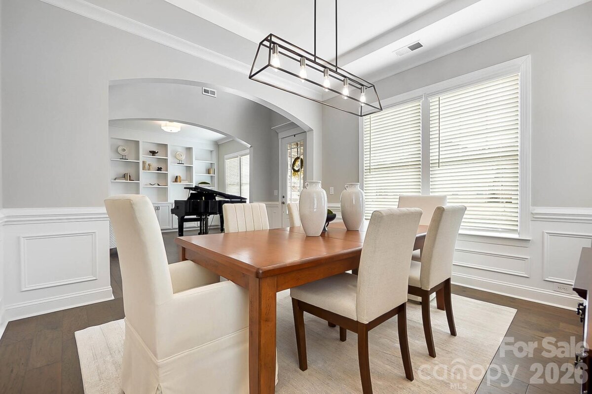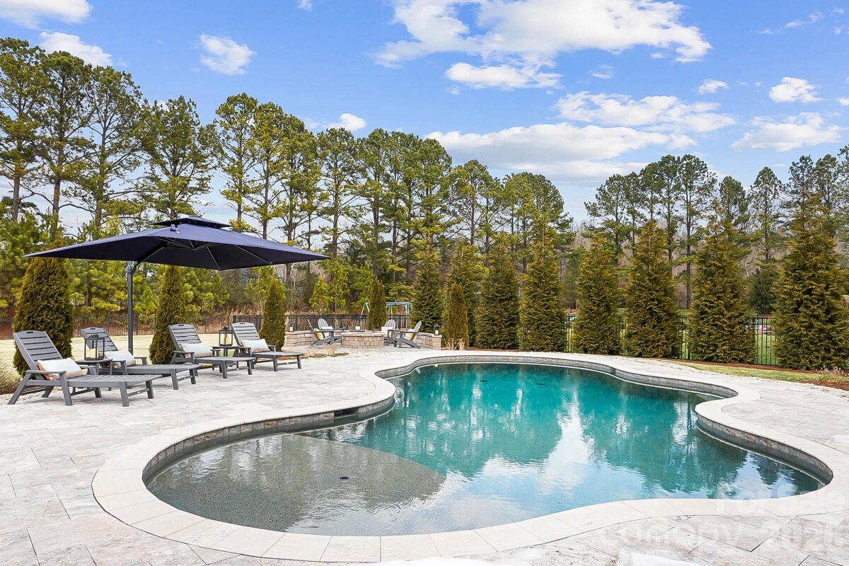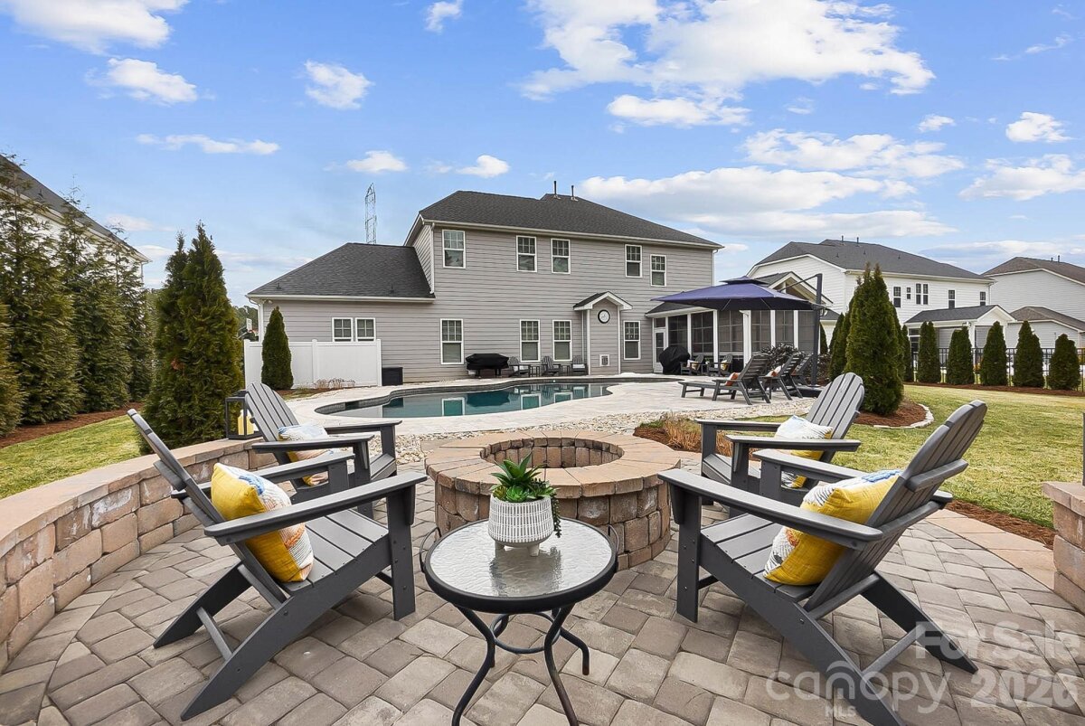 PRIMARY ON MAIN with a pool in Weddington! Welcome to 5014 Harwich Circle, a TURN-KEY residence set on a flat, fenced lot in a quiet enclave zoned for top-rated Weddington schools. This light-filled, open floorplan is anchored by pristine dark floors and is thoughtfully designed for everyday living, hosting friends and making memories. The welcoming entry is flanked by a formal dining room with an attached Butler's pantry and a flexible front room with custom built-ins, creating an ideal custom work-from-home sanctuary or library/music room. The heart of the home flows into the expansive great room with soaring coffered ceilings and gas fireplace and adjoining gourmet kitchen showcasing an oversized quartz island, an abundance of designer counter space and cabinetry, a pantry and room for everyone to gather. The main-level primary suite is a true retreat, featuring a spa-inspired bath with soaking tub, frameless glass oversized shower and a generous walk-in closet connected to the laundry room. Upstairs offers three additional sizable bedrooms, two full baths and a huge bonus room perfect for movie nights, a game room or work space. Step inside the three-car epoxy-finished garage, featuring custom organizational shelving and enjoy a seamless transition into the functional mudroom/drop zone. This everyday entry is perfectly situated next to the laundry room to handle busy routines with ease. The outdoor living is a true showstopper: enjoy year-round comfort on the screened porch with EZ Breeze windows, overlooking a sparkling, heated gunite pool and a custom travertine sundeck with a built-in firepit area. The expansive, flat backyard is fully fenced and kept lush by full-yard irrigation—the ultimate setting for weekend fun and pets. Better than new + impeccably appointed + zoned for top-rated Weddington schools + great location= WOW! This home delivers timeless style, comfort and distinction. This one truly feels like home. Showings start Thursday. OPEN HOUSES Saturday 2/14 from 12-2 and Sunday 2/15 from 1-3.