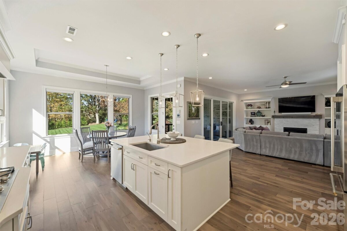 Welcome to 640 Winter Wheat, an exceptional luxury home in the sought-after community of Atherton. Offering nearly 7,000 square feet of beautifully designed living space, this stunning six-bedroom, five full and two half bath home seamlessly blends timeless finishes with modern functionality. Filled with natural light, the home features high ceilings and hardwood floors throughout. Inviting sitting room with built-in cabinetry, a spacious dining room , and welcoming living room with gas fireplace and custom shelving. The modern chef’s kitchen is the heart of the home, complete with a large center island, and opens to a bright breakfast room that leads to the covered deck and overlooks the lush backyard. The main-level primary suite is a private retreat with dual walk-in closets and a spa-inspired bathroom. Also on the main floor- an additional bedroom with ensuite bath and a convenient laundry room and drop zone right off the 3-car garage. Upstairs, you’ll find three spacious secondary bedrooms, two full baths, two large flex rooms ideal for a playroom, media room, home office, or fitness space, generous walk-in attic storage, and a second full laundry room complete with sink and storage. The full walkout basement offers incredible bonus space with high ceilings, a half bath, a large bedroom with ensuite bath and walk-in closet, and abundant unfinished storage. French doors open to an impressive outdoor living area designed for entertaining and resort-style living—featuring an outdoor kitchen with smart pergola, a stunning pool and spa with waterfall and fire feature, and a beautiful fireplace overlooking the expansive, private backyard with mature landscaping. Ideally located near Waverly and Blakeney shopping & dining, and within a sought-after, top rated school district, this remarkable home offers an unparalleled lifestyle. Truly too many features to list—don’t miss the opportunity to make this spectacular property your own.