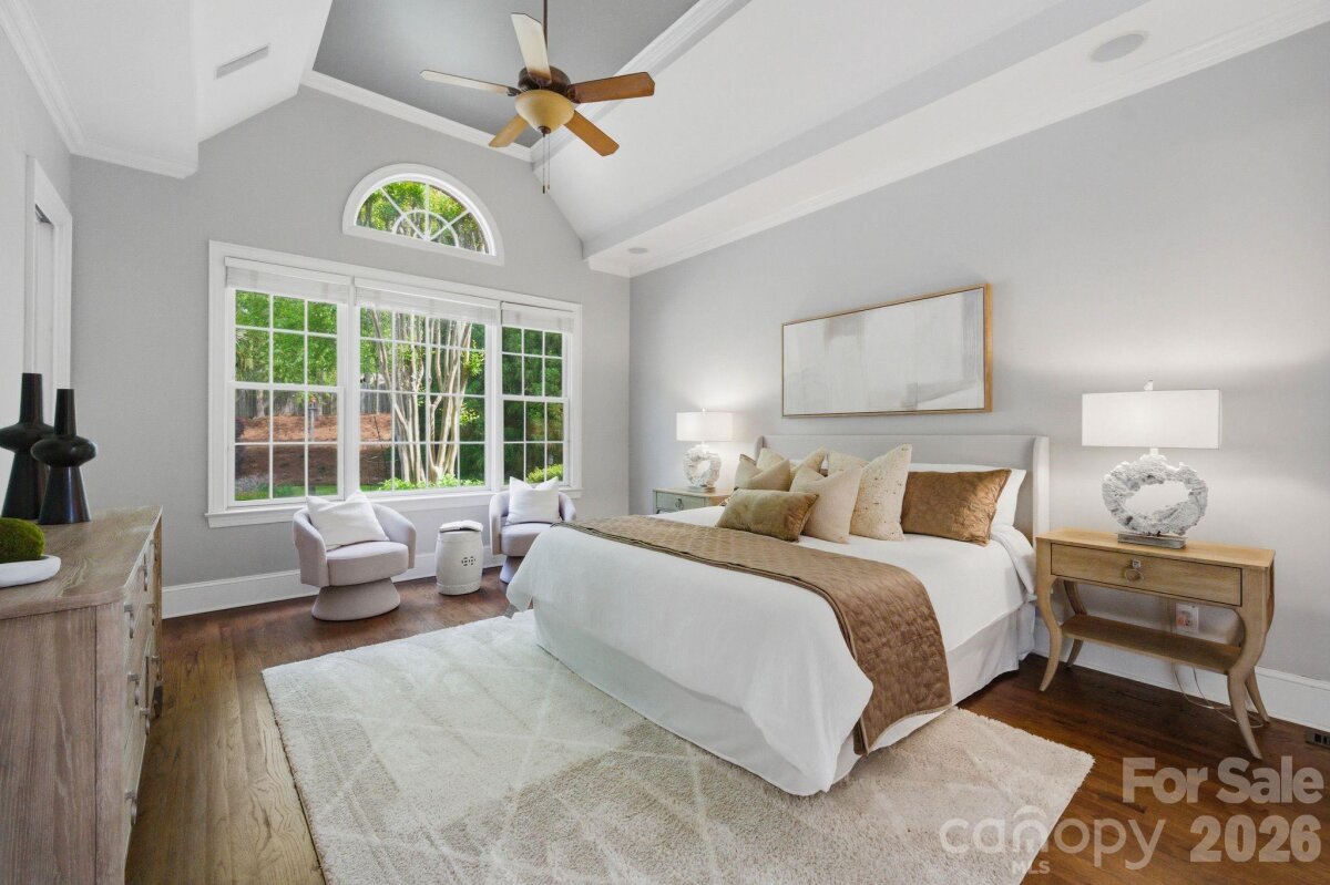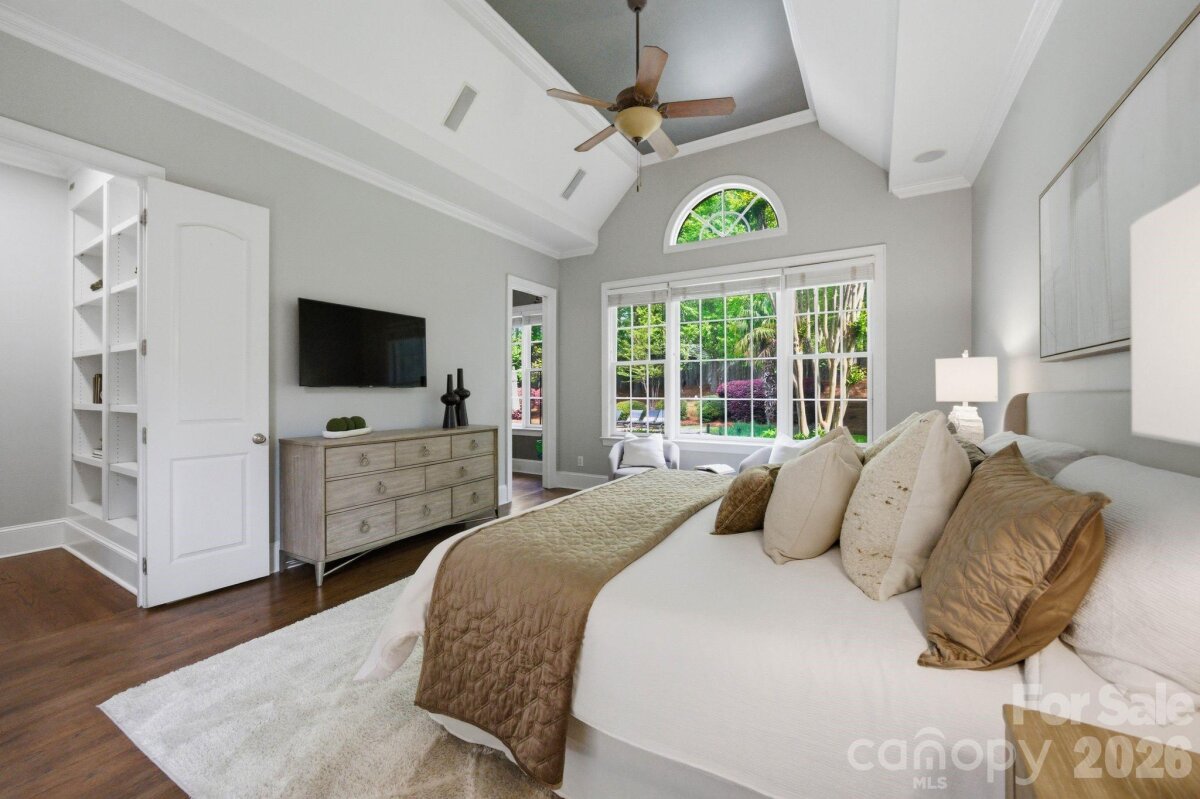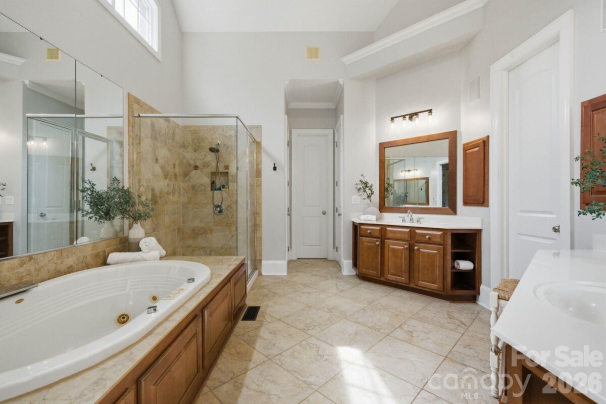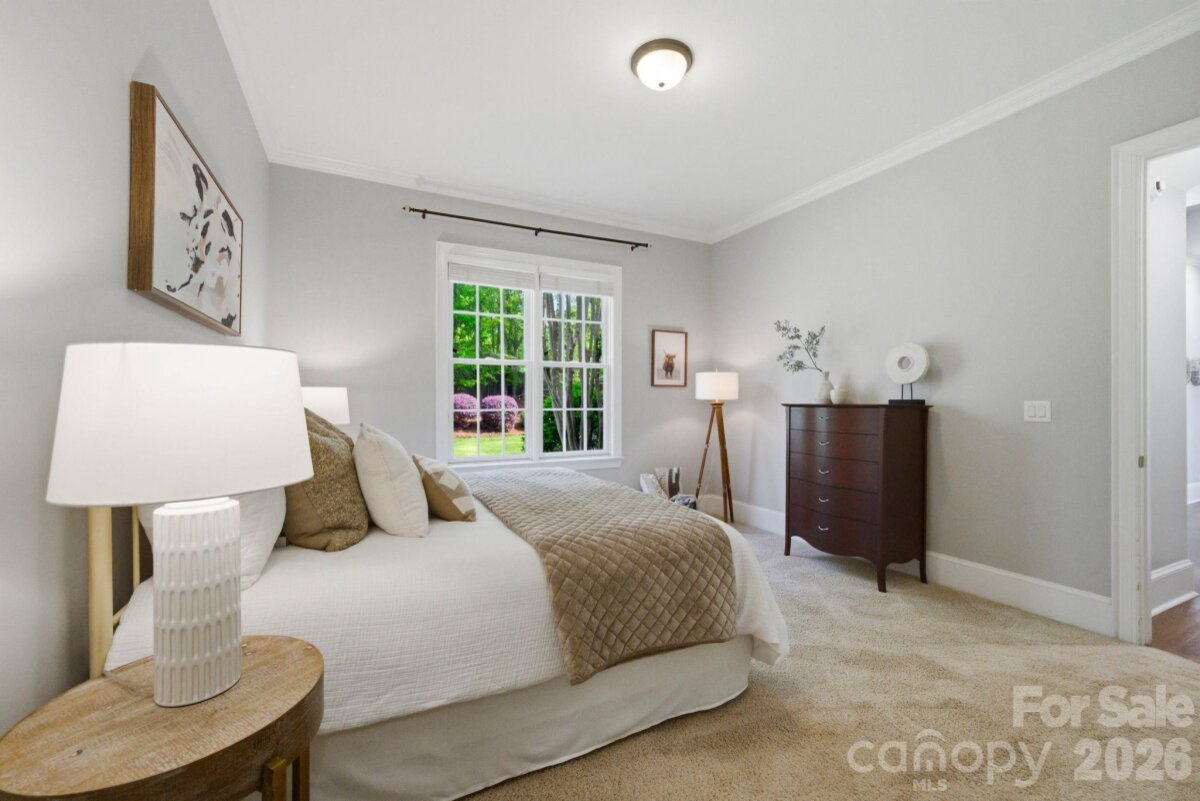 Commandingly positioned atop a coveted cul-de-sac, this spectacular brick-and-stone John Wieland Colonnade estate embodies timeless elegance and resort-style living in the prestigious Enclave of Brookhaven—an exclusive hideaway prized for its tranquility and privacy. Set on over half an acre of manicured grounds, the home spans nearly 5,000 square feet of sophisticated design, where grand architectural details blend seamlessly with everyday comfort. A soaring two-story foyer makes a stunning first impression, leading to light-filled living spaces that capture sweeping views of the lush, park-like surroundings. The main level offers a private sanctuary, anchored by a gracious primary suite with coffered ceilings, a spa-inspired bath, dual walk-in closets, and an adjoining study—perfect for a quiet retreat or luxe home office. A separate guest suite with a full ensuite bath ensures privacy for visitors. At the heart of the home, the impeccably designed kitchen opens to the fireside family room and breakfast nook, creating a warm and inviting hub for daily life and effortless entertaining. A sleek drop zone keeps everything organized. Upstairs, three spacious bedrooms, a dedicated home theater, and a sprawling bonus loft provide unmatched versatility—offering space for study sessions, a home gym, or simply unwinding in style. Outside, paradise awaits. The resort-worthy backyard steals the show with its glistening pool framed by natural stone grotto accents, a soothing spa, outdoor kitchen, and an expansive paver patio designed for gatherings under the stars. A fully fenced, level yard offers beauty, privacy, and room to play. Additional highlights include a rare four-car garage, hardwood flooring throughout the main level, 10-foot ceilings, and over 600+ square feet of dedicated storage space, providing capacity for seasonal décor and long-term organization needs. A private trail connects directly to the neighborhood’s world-class amenities—clubhouse, pool with lazy river, tennis courts, fitness center, and walking trails. Perfectly positioned minutes from downtown Matthews, The Shops at Waverly, Rea Farms, and Blakeney—and zoned for the award-winning Weddington school district—this estate is more than a home. It’s a lifestyle masterpiece and the kind of place you never want to leave.