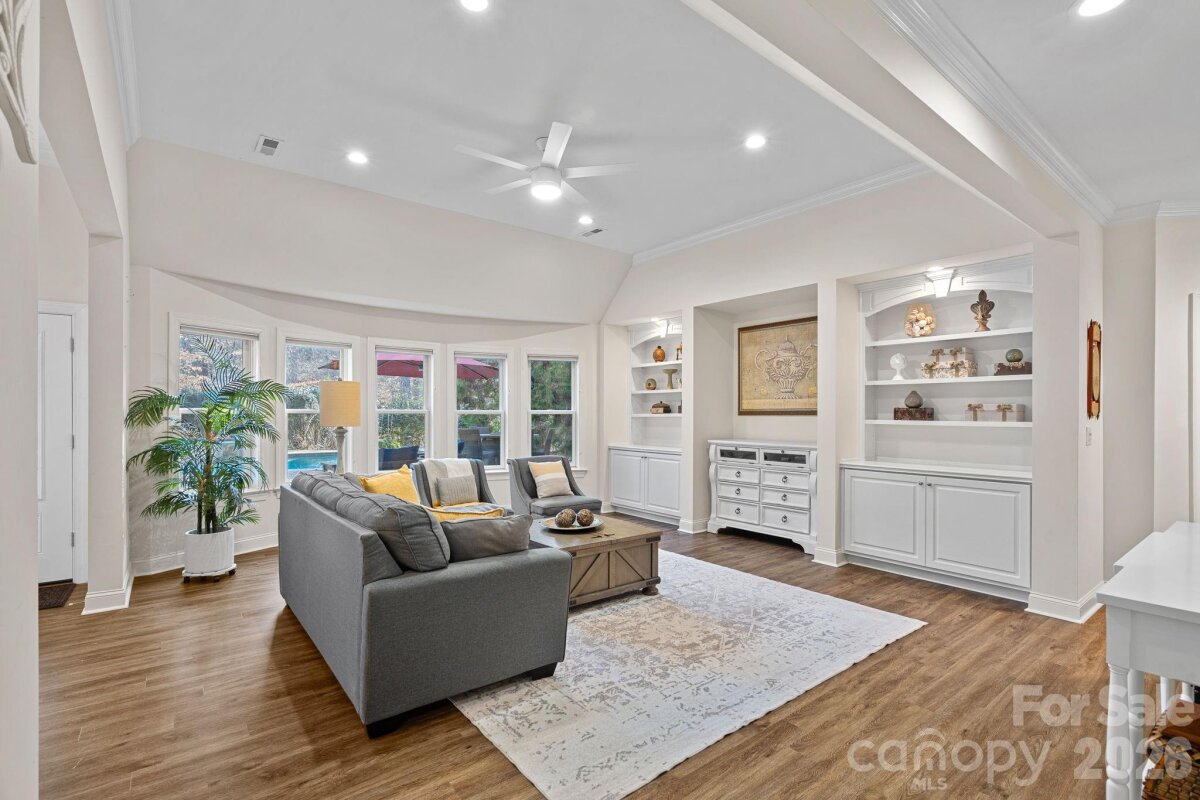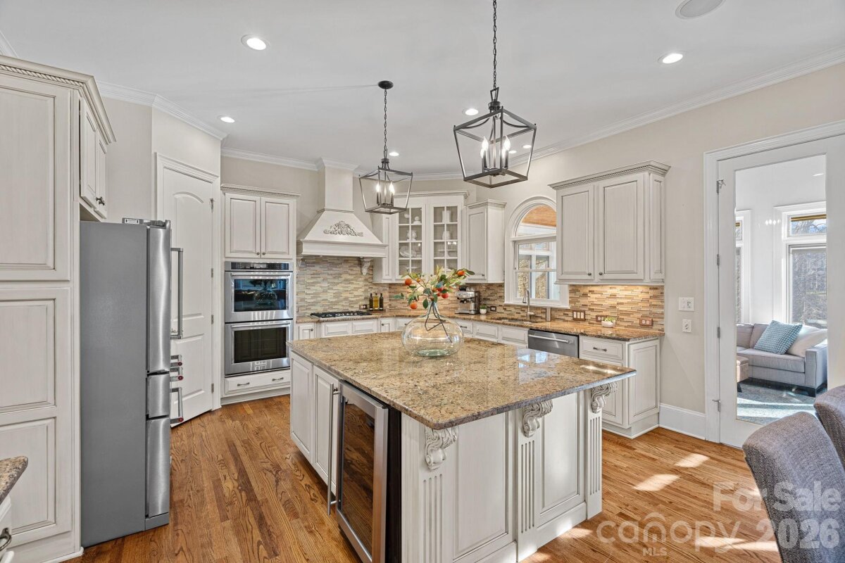 Gracefully positioned on nearly half an acre at the end of a coveted cul-de-sac in the desirable Enclave of Brookhaven, this exceptional full brick estate offers over 6,500 square feet of refined living in a community prized for its resort-style amenities and access to highly regarded schools. This John Wieland Colonnade home is designed for both elegant entertaining and everyday comfort, this home delivers luxury, flexibility, and an elevated lifestyle just minutes from downtown Matthews. A grand two-story foyer sets a stunning first impression, highlighted by a dramatic circular staircase that anchors the home with timeless architectural elegance. At the heart of the home, a gourmet kitchen anchors the main level, seamlessly opening to a dramatic two-story great room filled with natural light. A sun-drenched sunroom provides a serene space to unwind, while a main-level guest suite offers privacy and convenience for visiting family or extended stays. The primary suite is a true retreat, featuring a versatile flex space ideal for a private sitting room, home office, or wellness studio. Additional bedrooms and baths are thoughtfully arranged to support both daily living and gracious hosting.The fully finished walk-out basement is perfectly suited for multi-generational living complete with a second kitchen, spacious living area, and a second laundry offering the comfort and independence of a private residence while remaining connected to the home. Outdoor living rivals that of a private resort. The tree lined backyard oasis showcases a saltwater gunite pool and spa, a covered paver patio for year-round entertaining, and a tranquil koi pond, creating an atmosphere of relaxation and retreat. From its resort-style outdoor living to thoughtfully designed interior, this home presents an unparalleled opportunity to enjoy luxury living in one of the area's most sought-after communities.